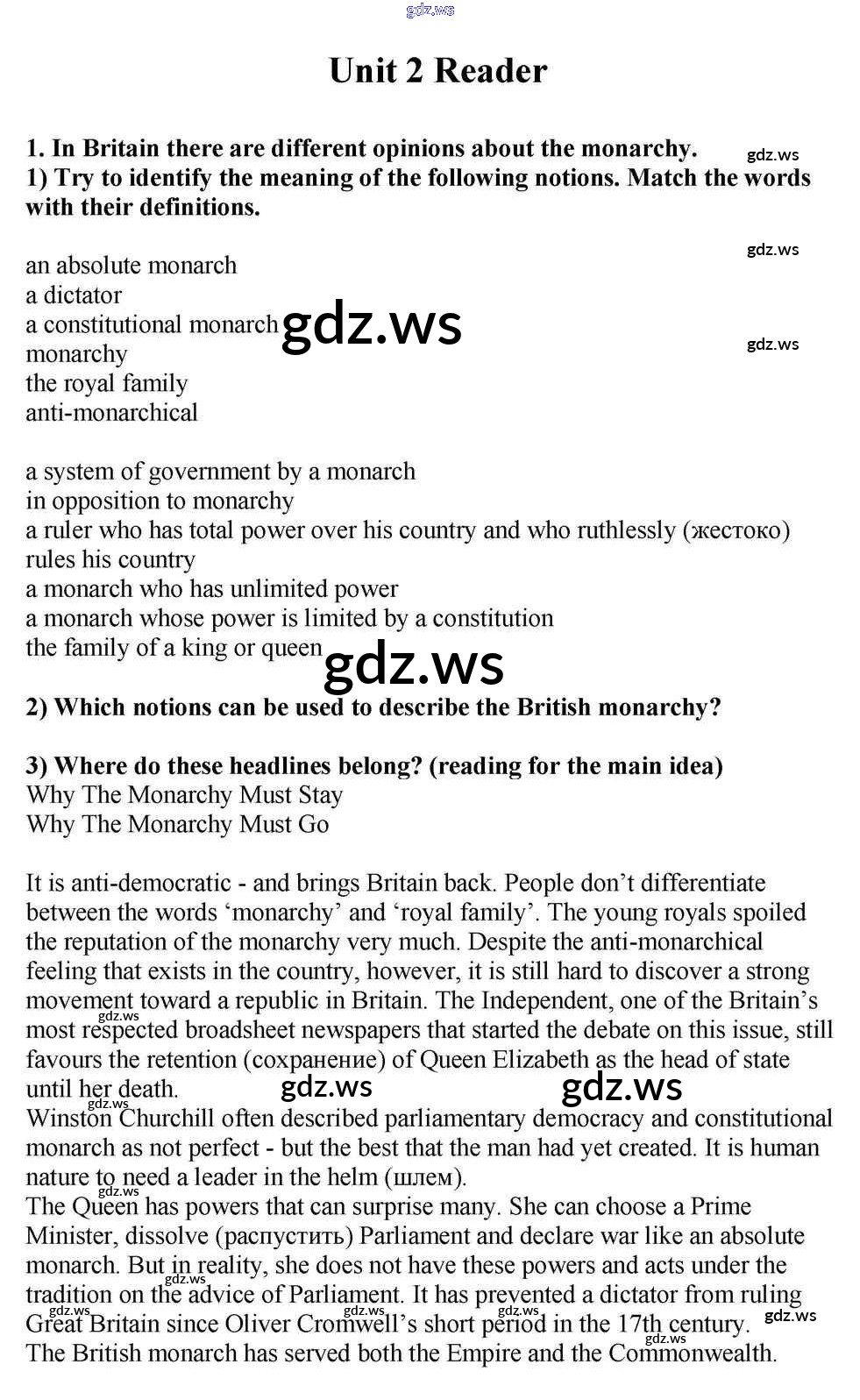 Готовый ответ Reader Unit 2. Western Democracies. Are They Democratic? - Английскому языку 11 класс Кузовлев Учебник ФГОС