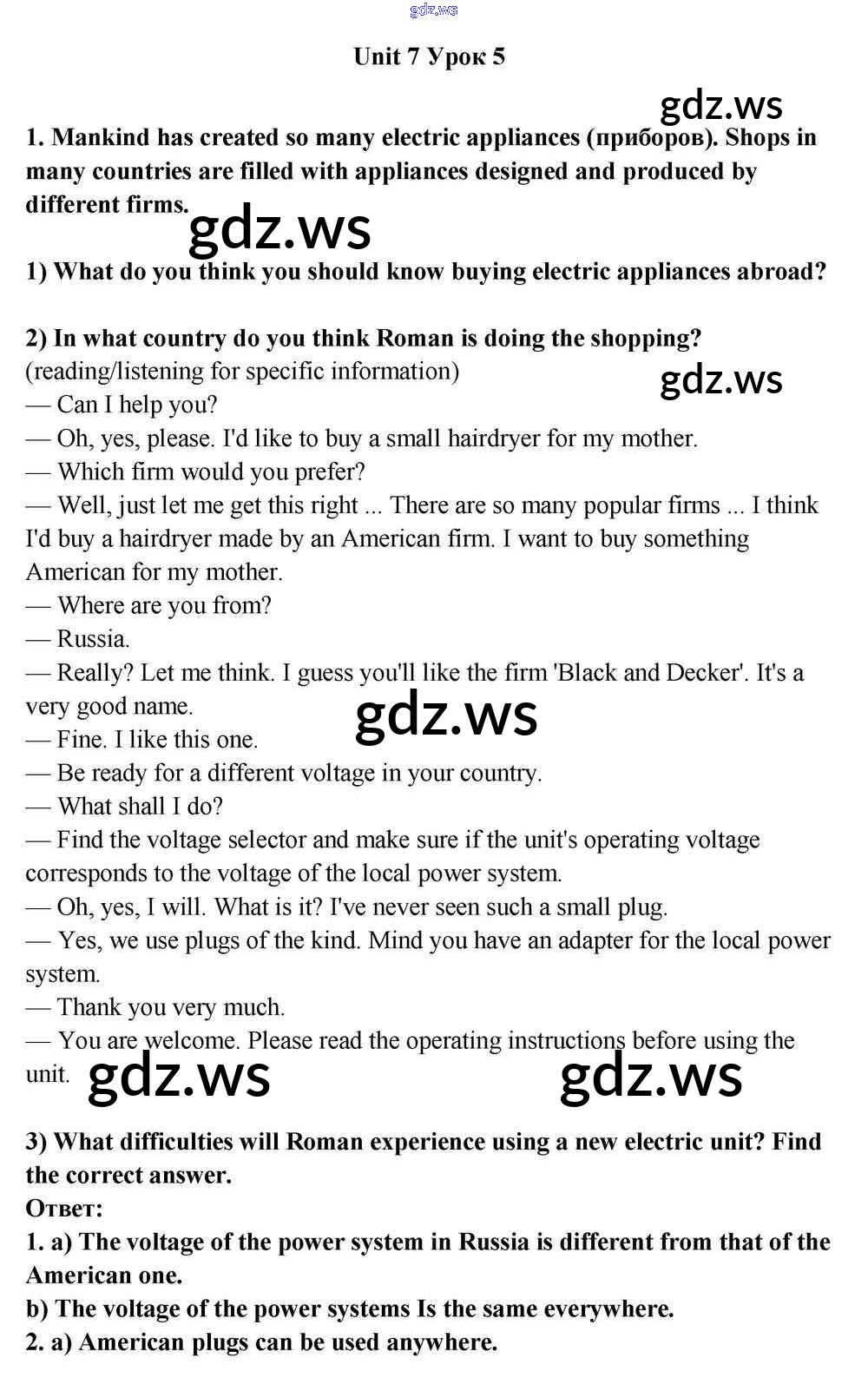 Готовый и полный ответ к Lesson 5 Unit 7. Inventions That Shook the World - Английскому языку 11 класс Кузовлев Учебник ФГОС