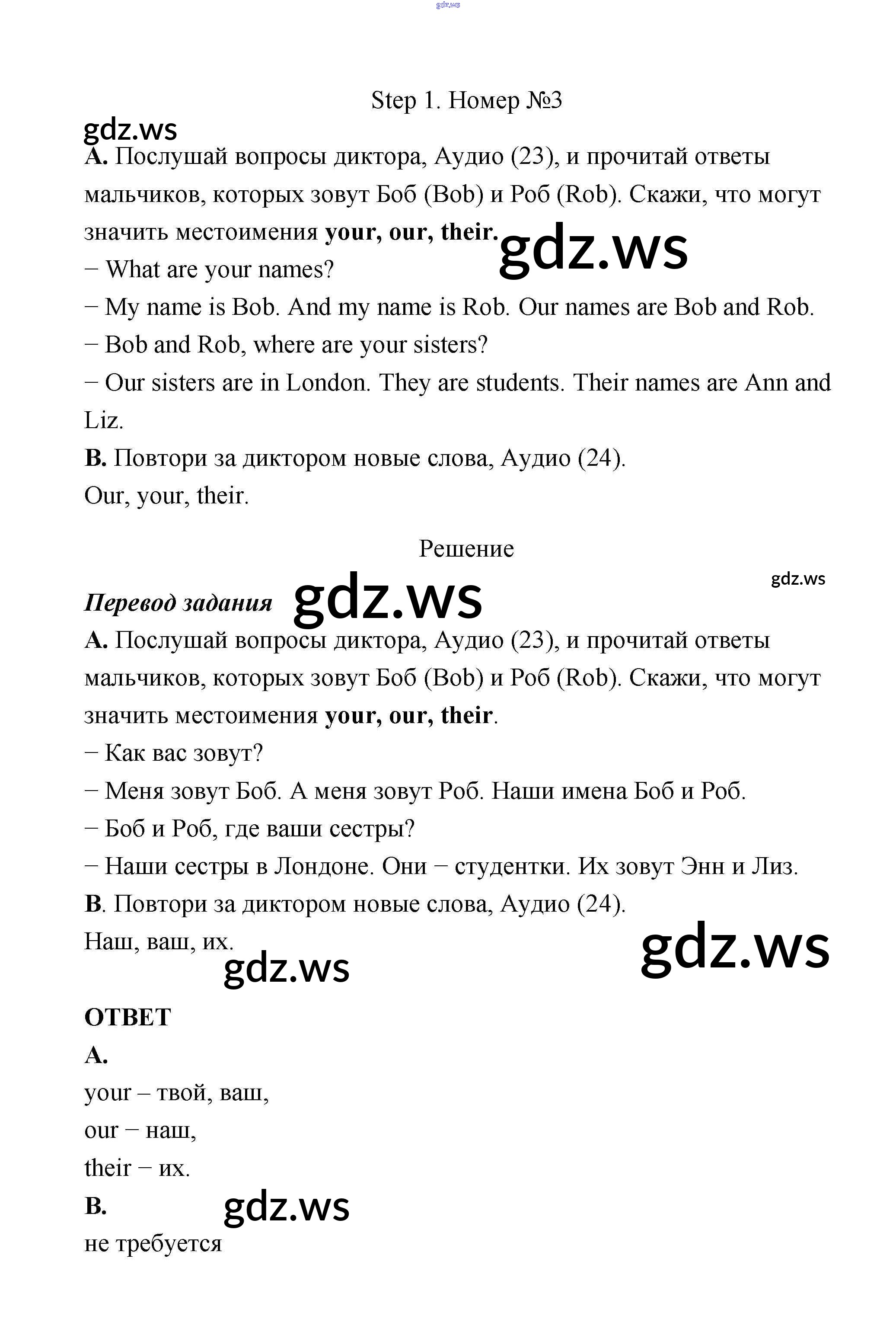 Готовый и полный ответ к Step 1 Unit 2 - Английскому языку 3 класс Афанасьева Учебник Rainbow