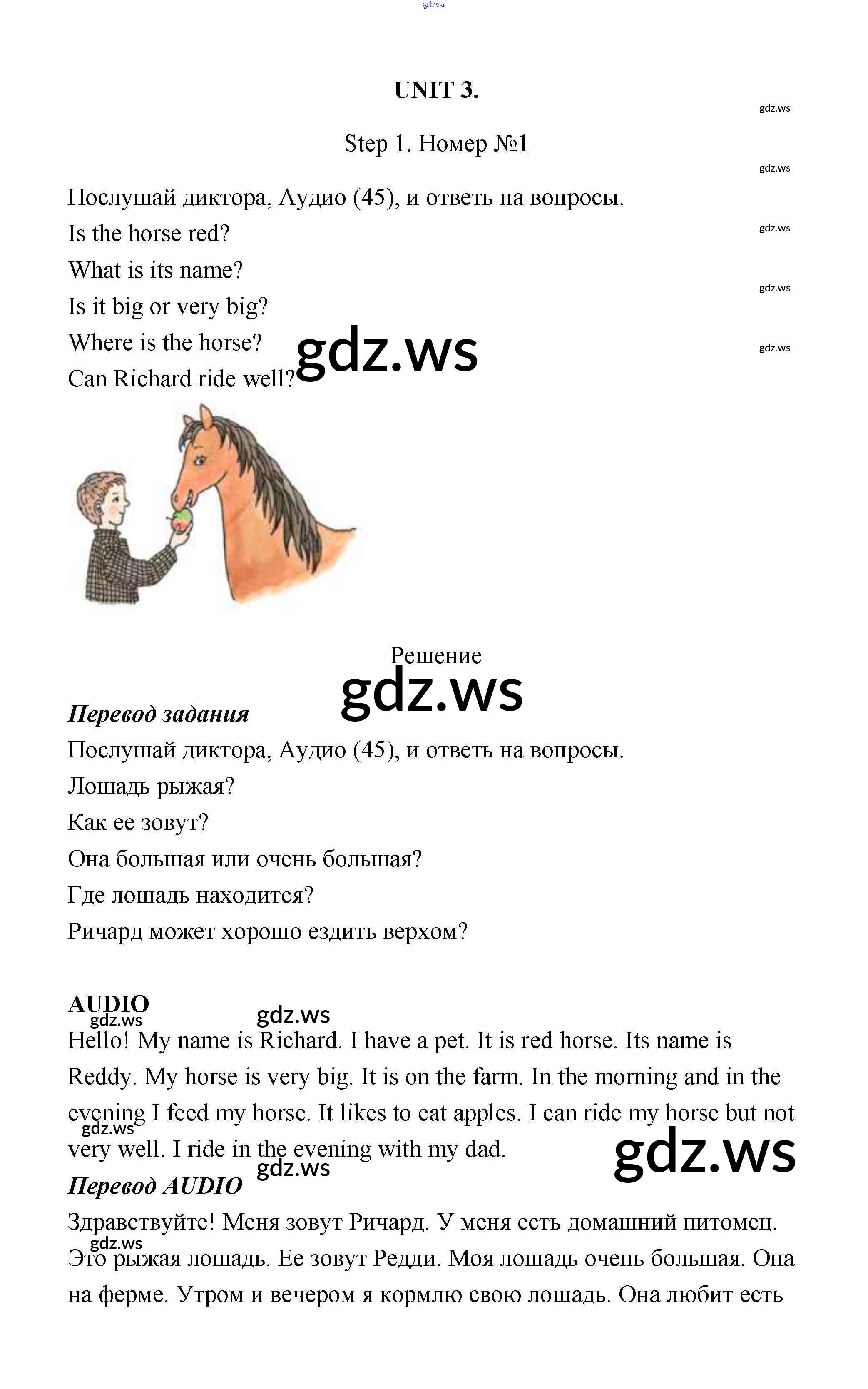 Готовый и полный ответ к Step 1 Unit 3 - Английскому языку 3 класс Афанасьева Учебник Rainbow