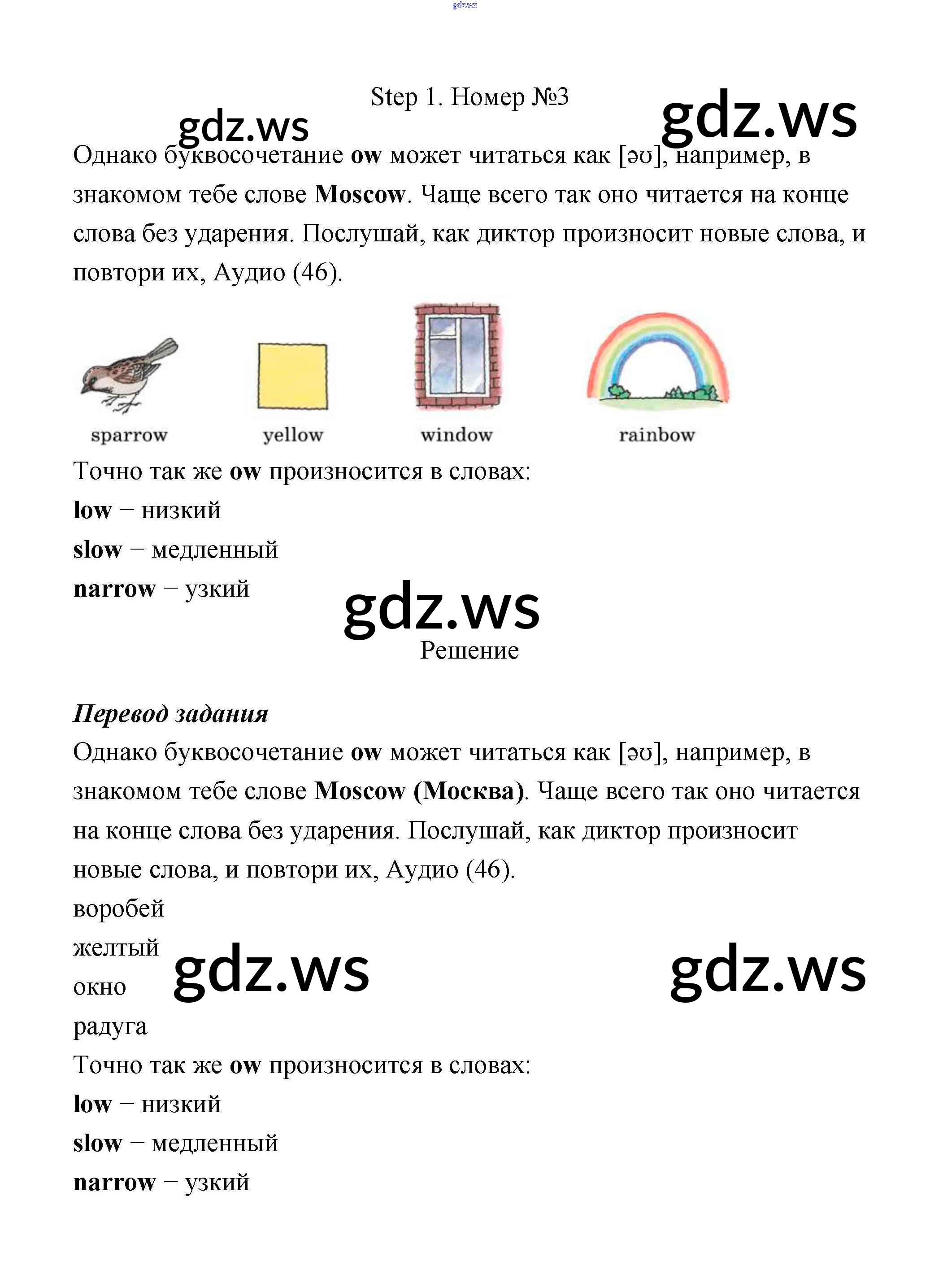Готовый и полный ответ к Step 1 Unit 3 - Английскому языку 3 класс Афанасьева Учебник Rainbow