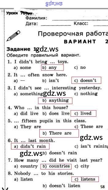 Готовый и полный ответ к Страницы - Английскому языку 3 класс Барашкова Проверочные работы УМК ФГОС