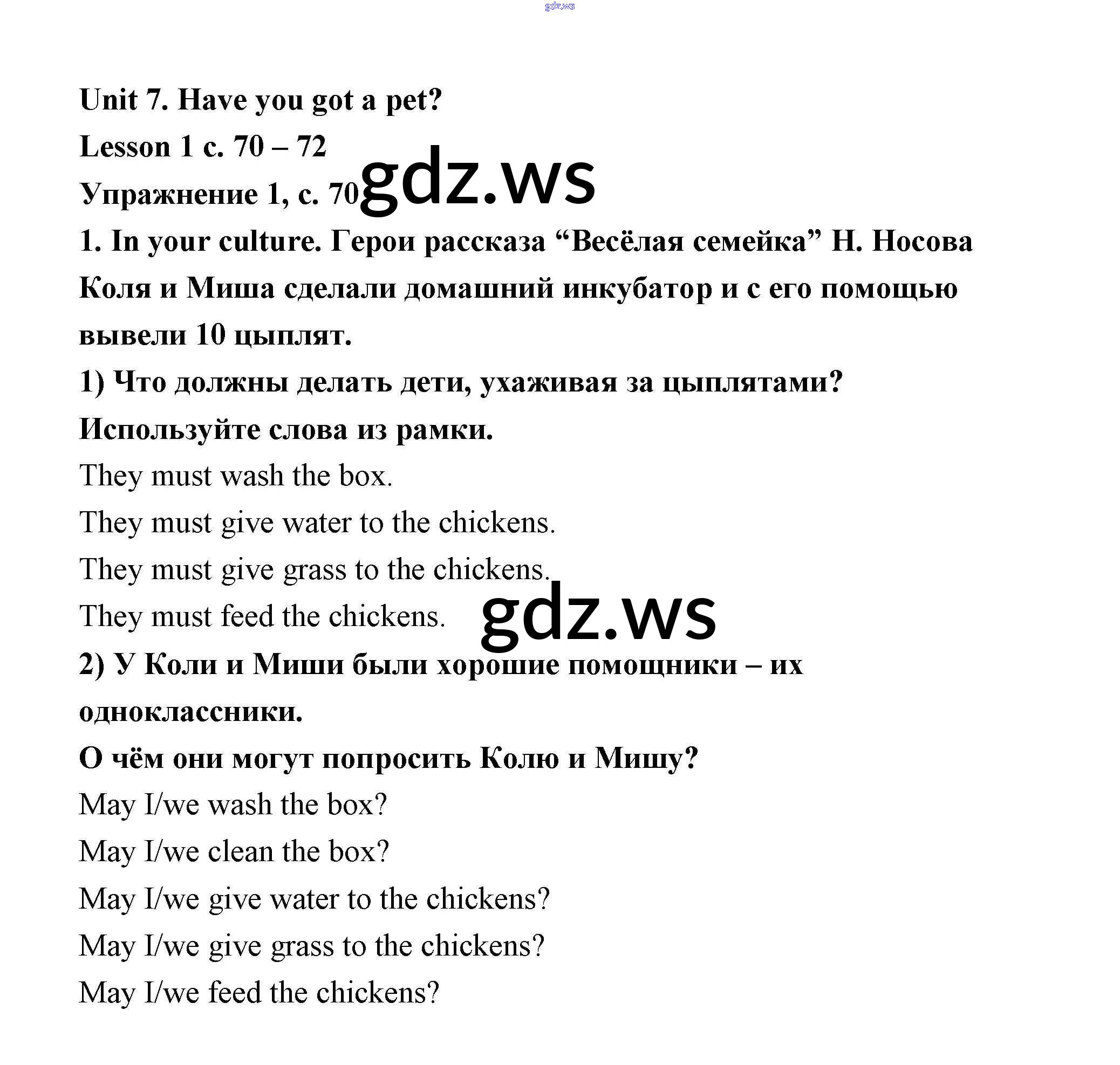 Готовый ответ Unit 7 - Английскому языку 3 класс Кузовлёв Рабочая тетрадь ФГОС