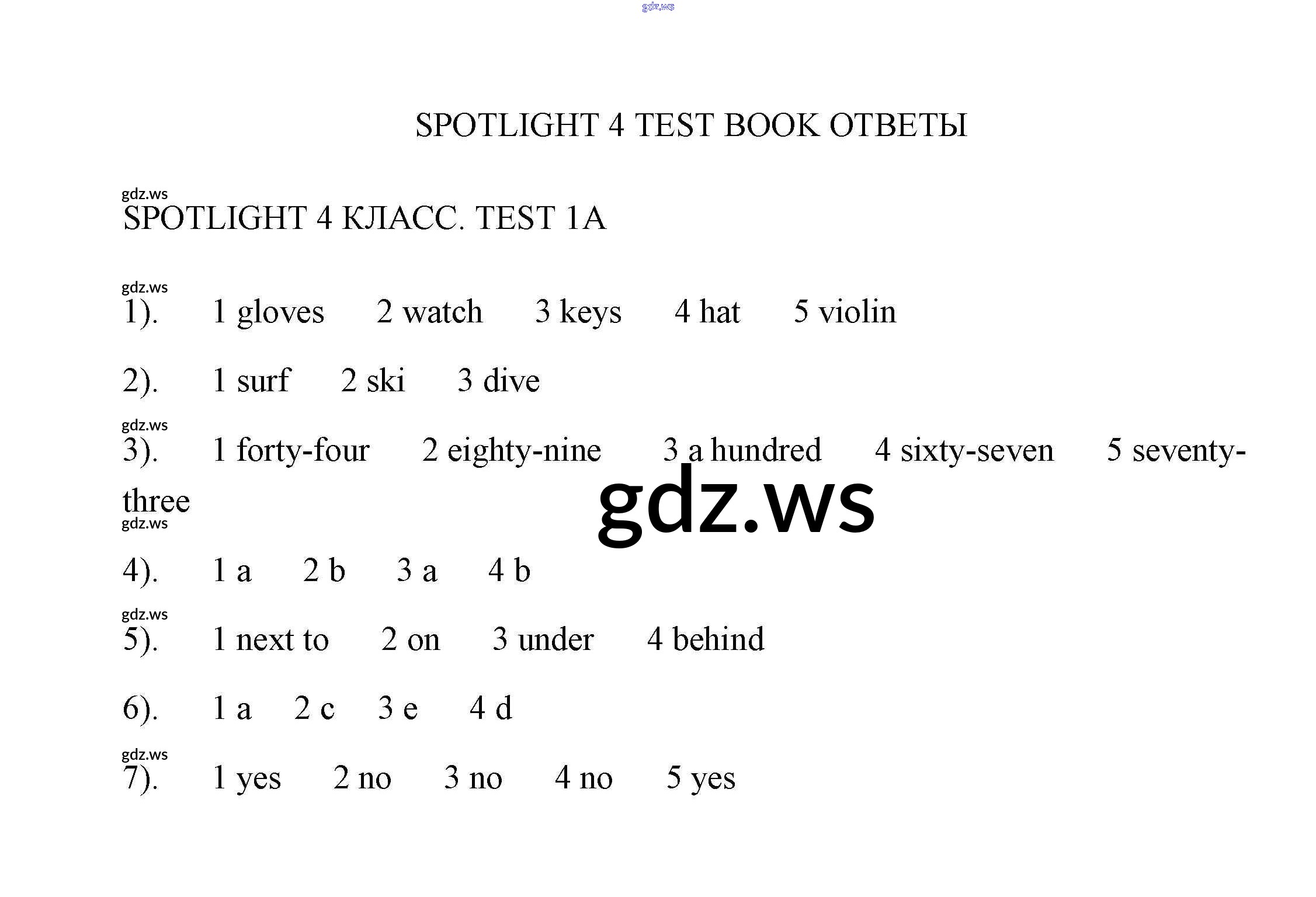 Готовый и полный ответ к Контрольная работа 1 - Английскому языку 4 класс Быкова Контрольные работы Spotlight ФГОС