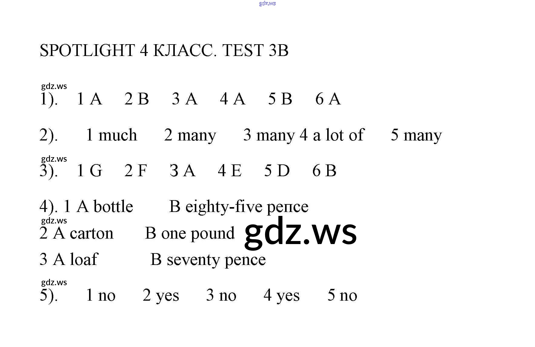 Готовый и полный ответ к Контрольная работа 3 - Английскому языку 4 класс Быкова Контрольные работы Spotlight ФГОС