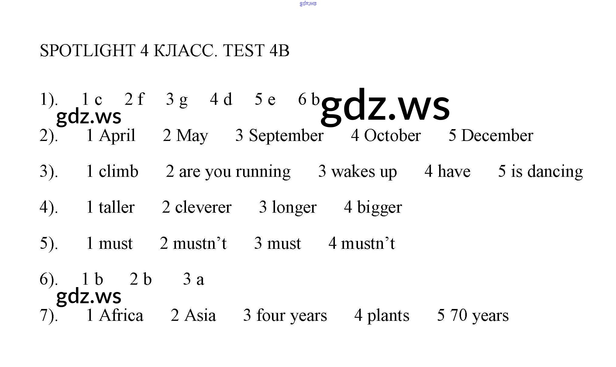 Готовый и полный ответ к Контрольная работа 4 - Английскому языку 4 класс Быкова Контрольные работы Spotlight ФГОС