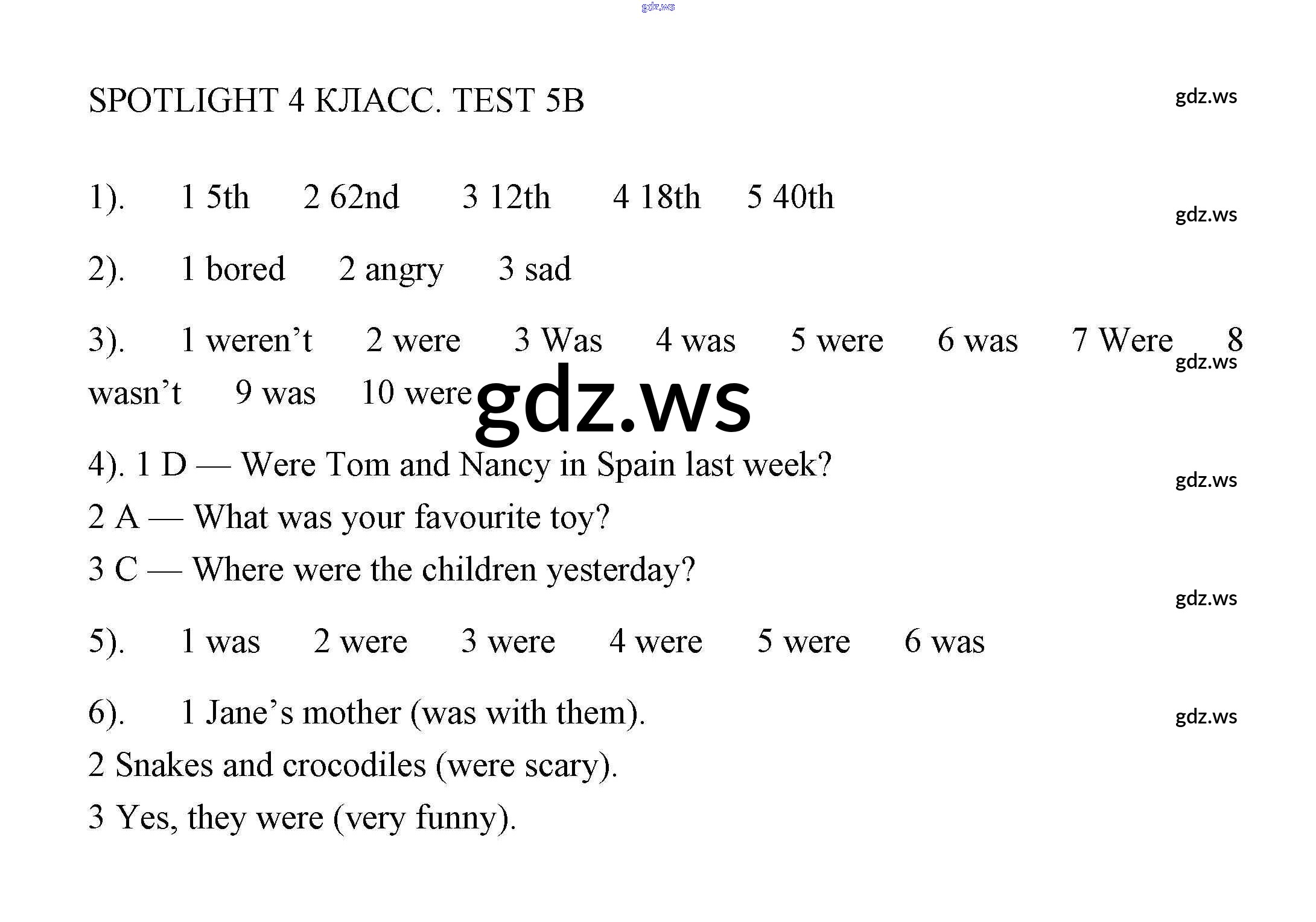 Готовый и полный ответ к Контрольная работа 5 - Английскому языку 4 класс Быкова Контрольные работы Spotlight ФГОС