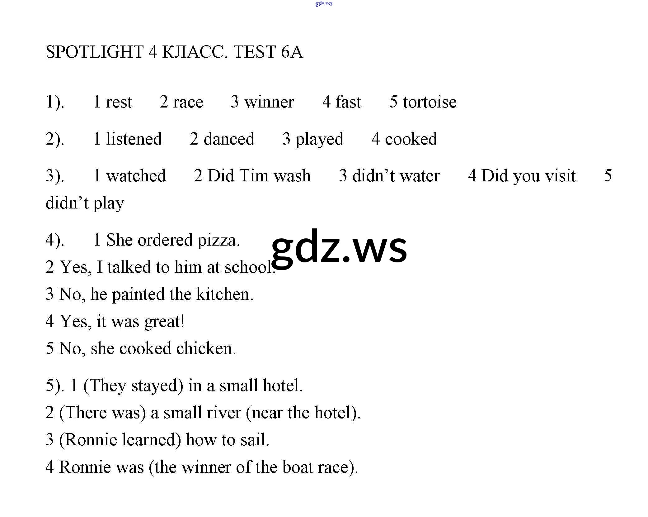 Готовый и полный ответ к Контрольная работа 6 - Английскому языку 4 класс Быкова Контрольные работы Spotlight ФГОС