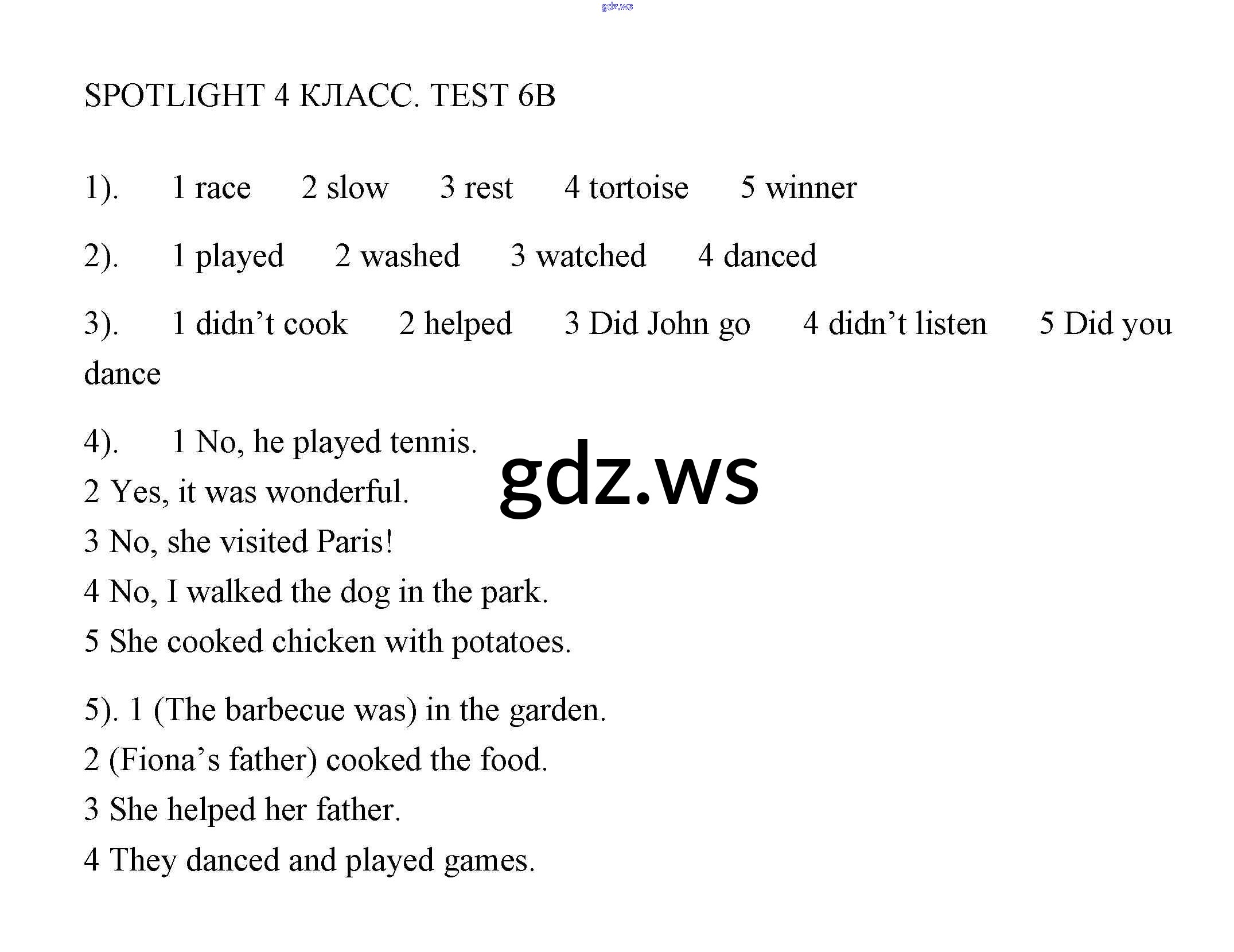 Готовый ответ Контрольная работа 6 - Английскому языку 4 класс Быкова Контрольные работы Spotlight ФГОС