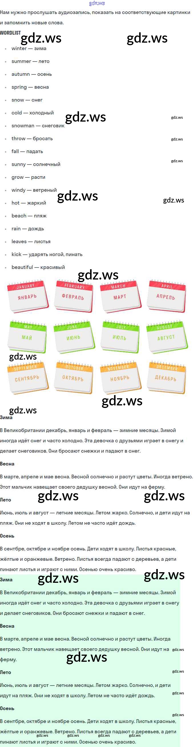 Готовый и полный ответ к Раздел 7. Погода - Английскому языку 4 класс Комарова Учебник Brilliant ФГОС