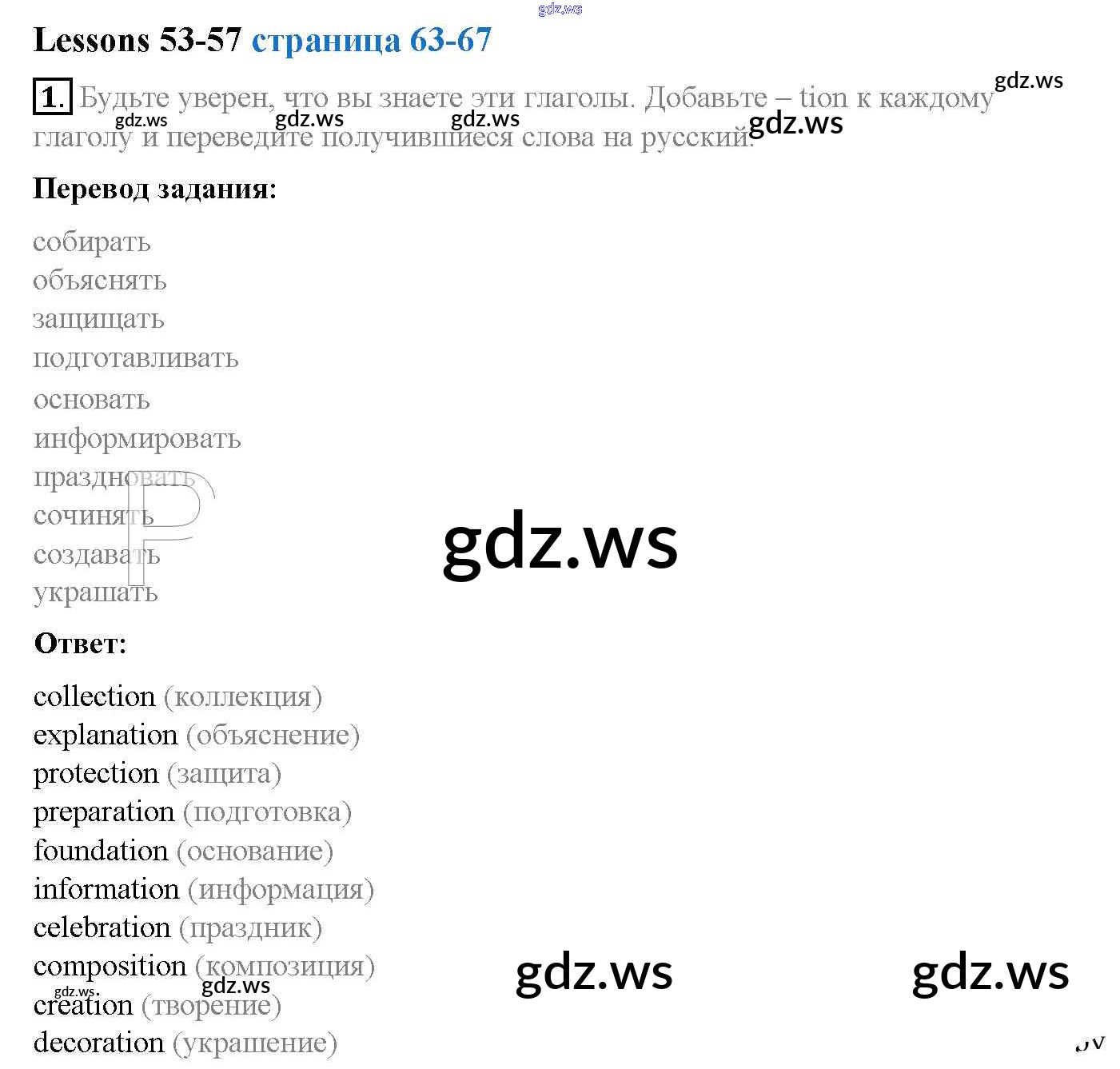 Готовый ответ Lesson 53-57 (Упражнения) - Английскому языку 4 класс Верещагина Рабочая тетрадь Углубленный уровень ФГОС