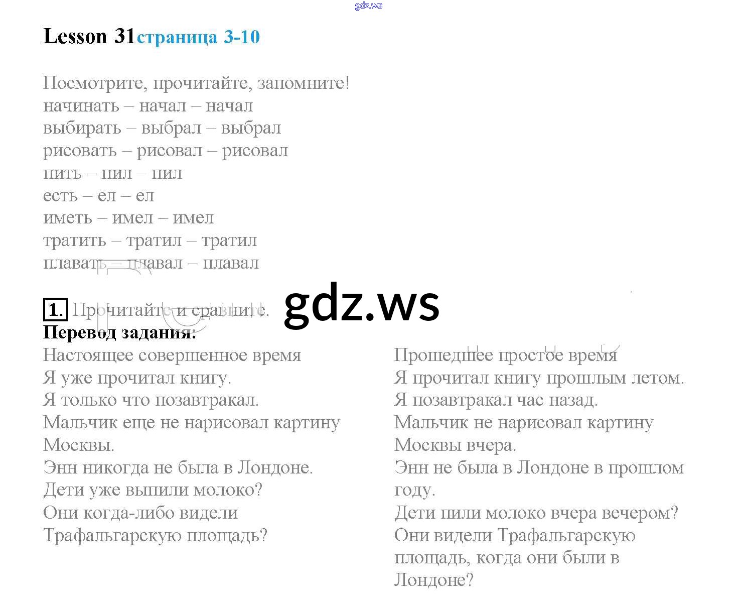 Готовый и полный ответ к Lesson 31 - Английскому языку 4 класс Верещагина Учебник Углубленный уровень ФГОС