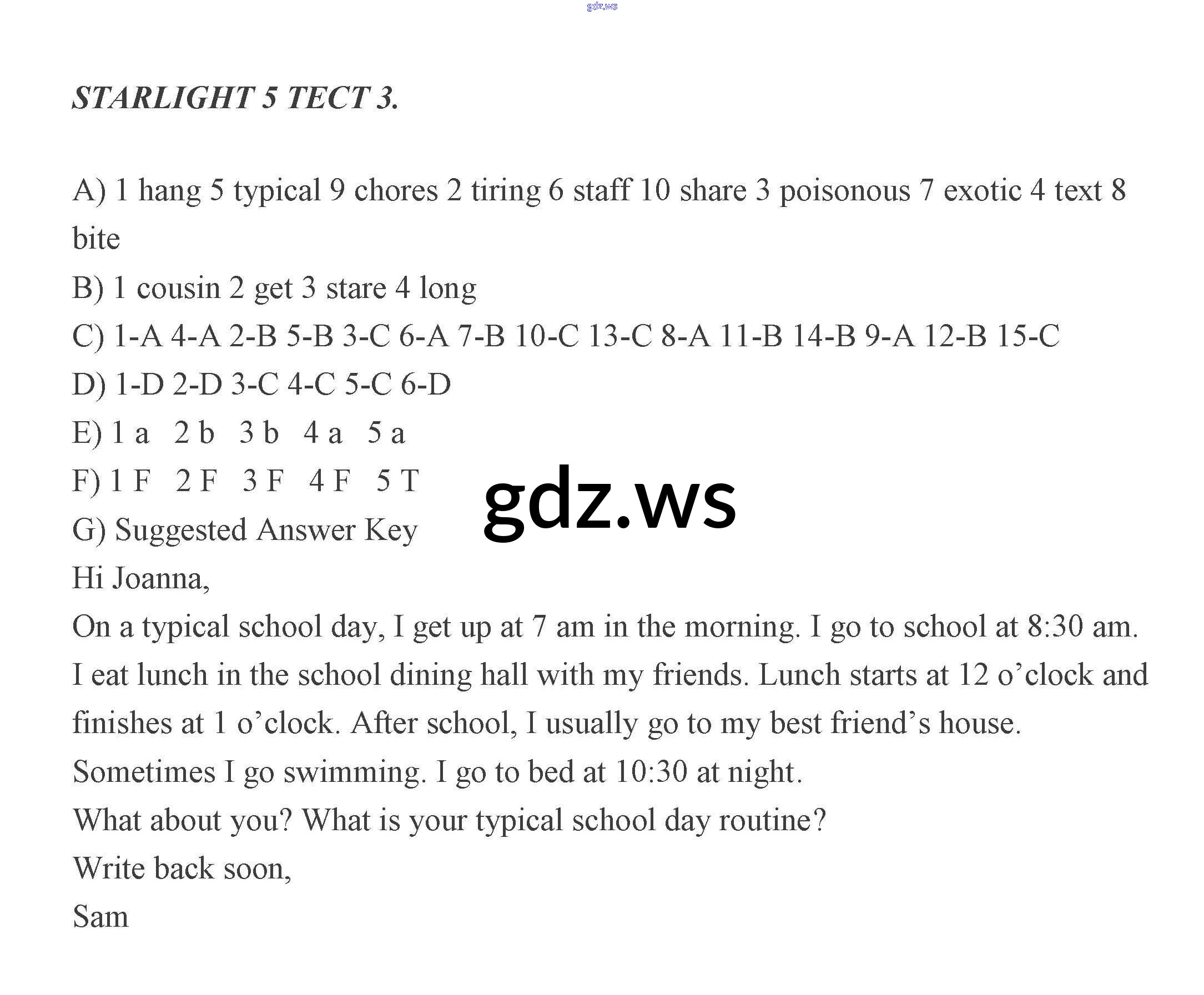 Готовый и полный ответ к Тесты - Английскому языку 5 класс Баранова Контрольные задания Углубленный уровень Starlight