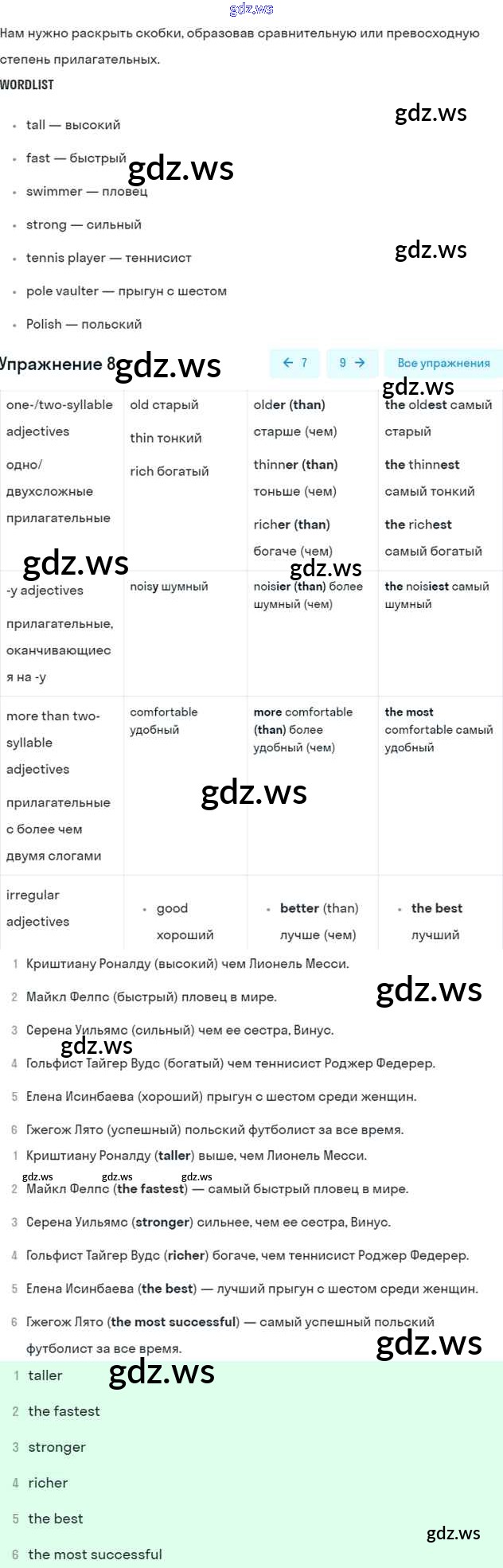 Номера упражнений: