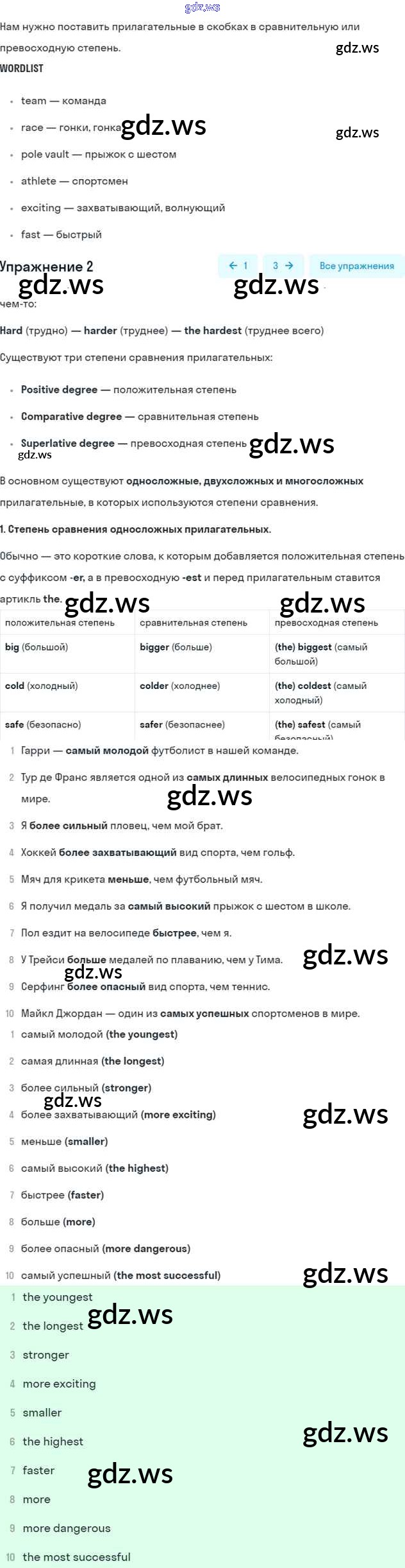 Номера упражнений: