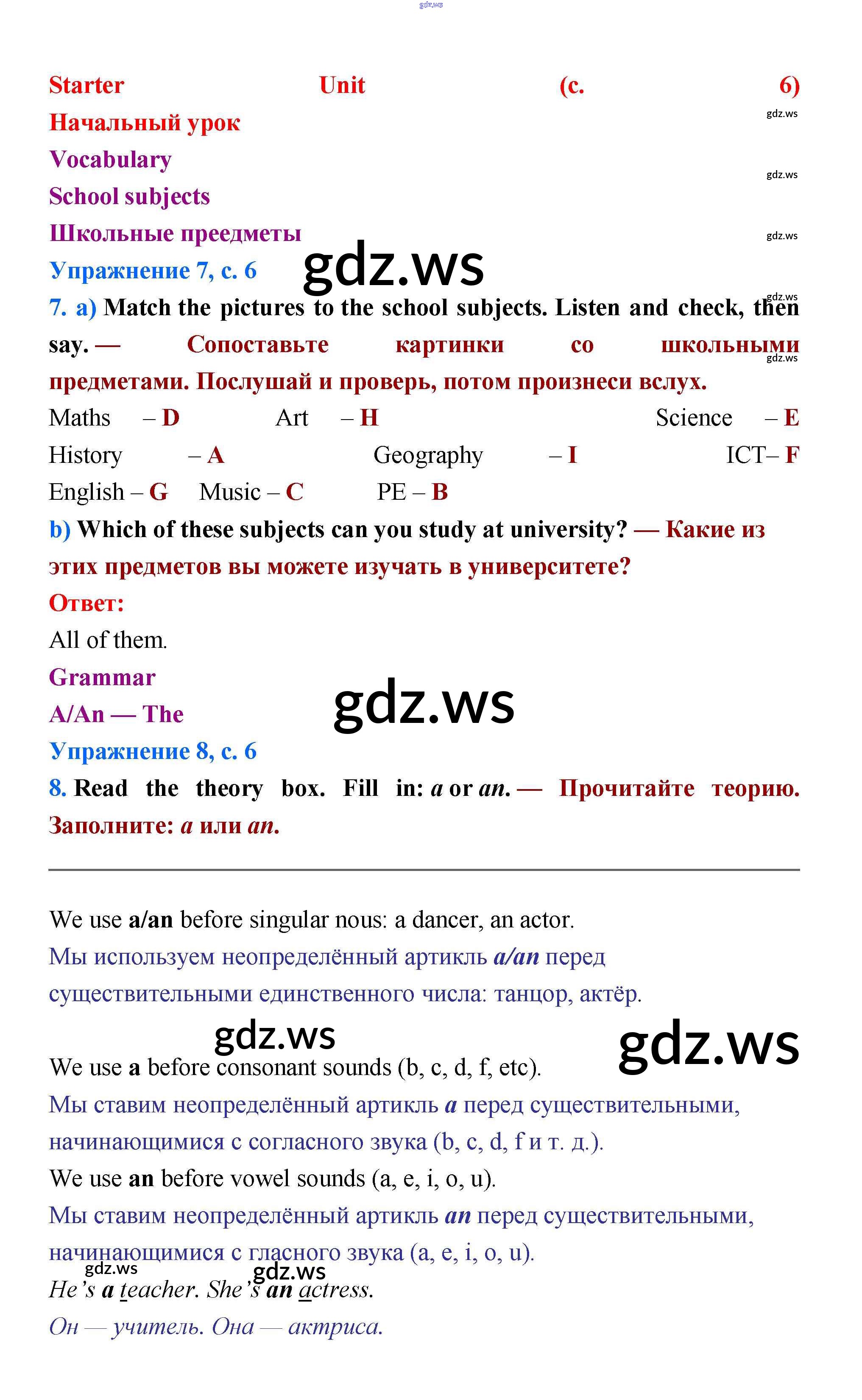 Готовый и полный ответ к Starter unit - Английскому языку 5 класс Баранова Учебник Углубленный уровень Starlight