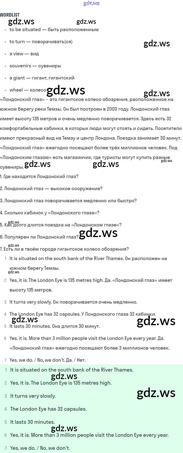 Готовый и полный ответ к Unit 3. Faces of London - Английскому языку 5 класс Биболетова Учебник Enjoy English ФГОС