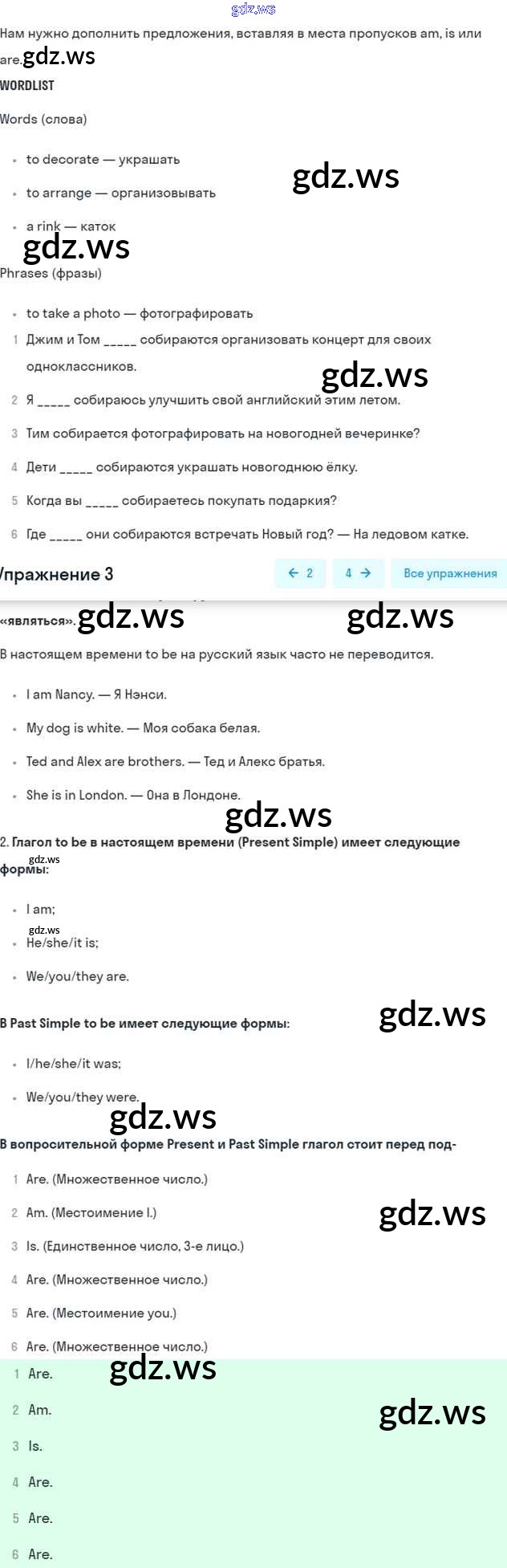 Номера упражнений: