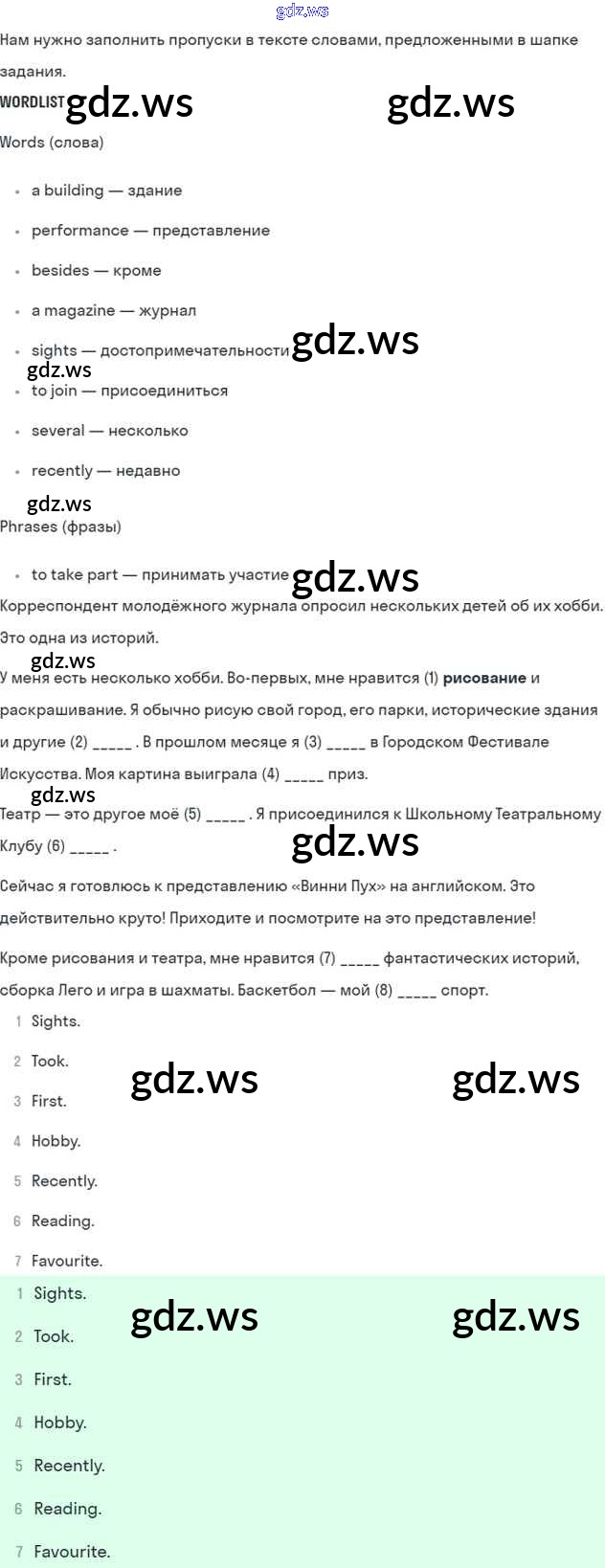 Готовый и полный ответ к Test yourself 8 Unit 4 - Английскому языку 5 класс Биболетова Рабочая тетрадь Enjoy English ФГОС