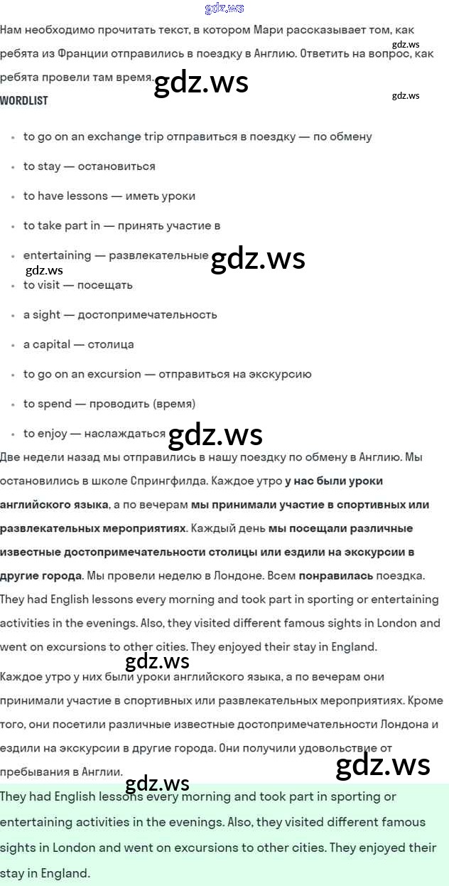 Готовый и полный ответ к Lesson 1. We had a nice time in London Unit 6. We’ve had a nice trip to England - Английскому языку 5 класс Кузовлев Учебник УМК ФГОС