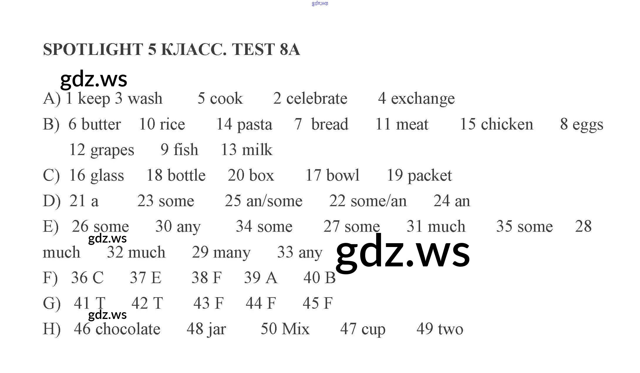 Готовый ответ Тест 8 (Варианты) - Английскому языку 5 класс Ваулина Контрольные задания Spotlight