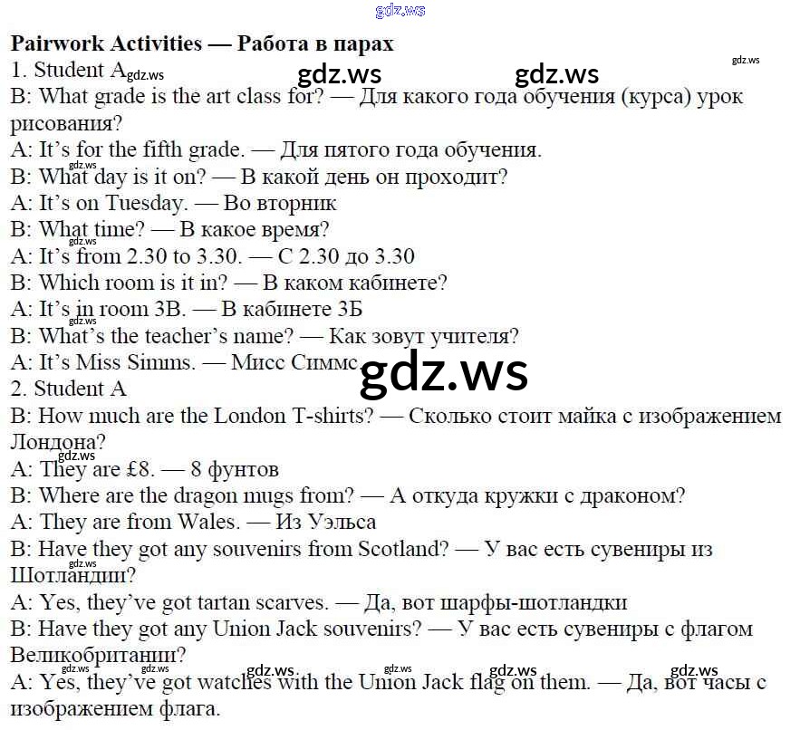 Готовый и полный ответ к Работа в парах - Английскому языку 5 класс Ваулина Рабочая тетрадь Spotlight ФГОС