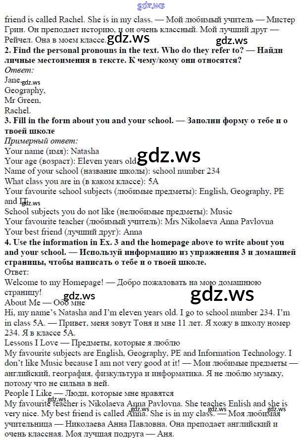 Готовый и полный ответ к Страницы - Английскому языку 5 класс Ваулина Рабочая тетрадь Spotlight ФГОС