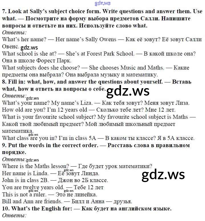 Готовый и полный ответ к Страницы - Английскому языку 5 класс Ваулина Рабочая тетрадь Spotlight ФГОС