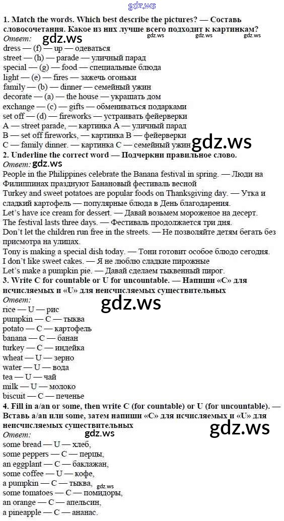 Готовый и полный ответ к Страницы - Английскому языку 5 класс Ваулина Рабочая тетрадь Spotlight ФГОС