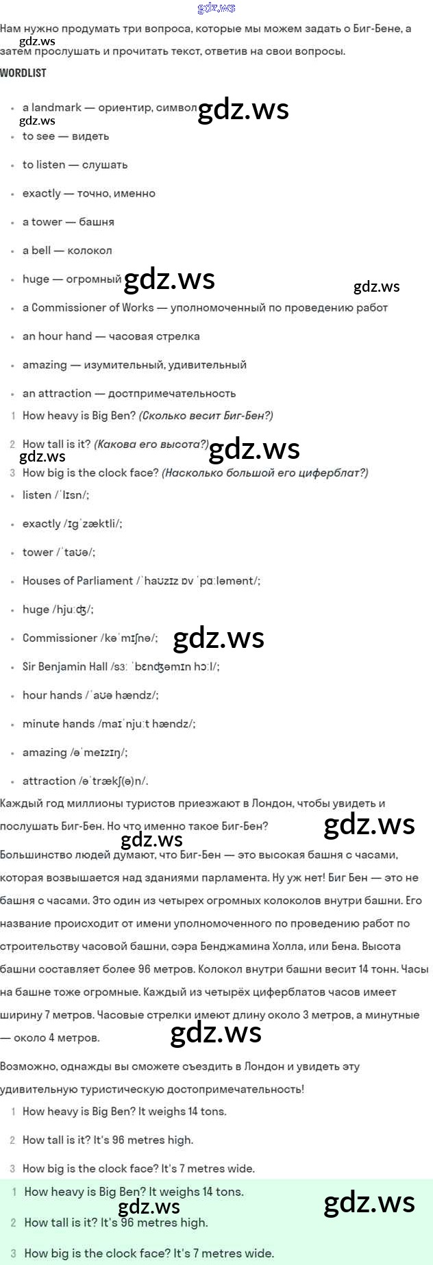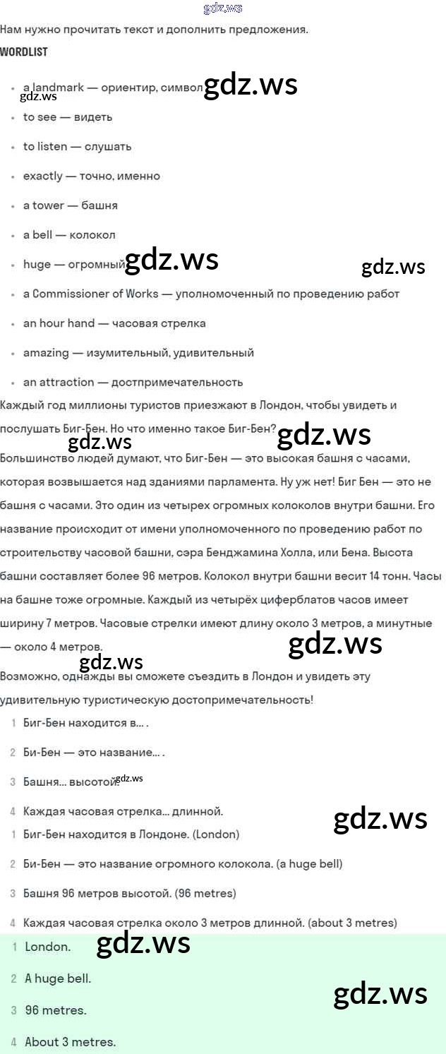 Готовый и полный ответ к Module 6. Round the clock - Английскому языку 5 класс Ваулина Учебник Spotlight ФГОС