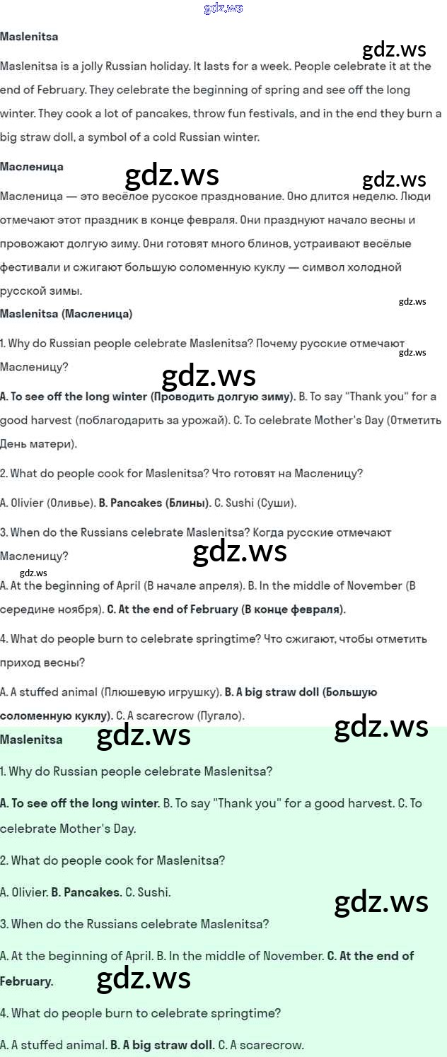 Готовый и полный ответ к Module 8. Special days - Английскому языку 5 класс Ваулина Учебник Spotlight ФГОС