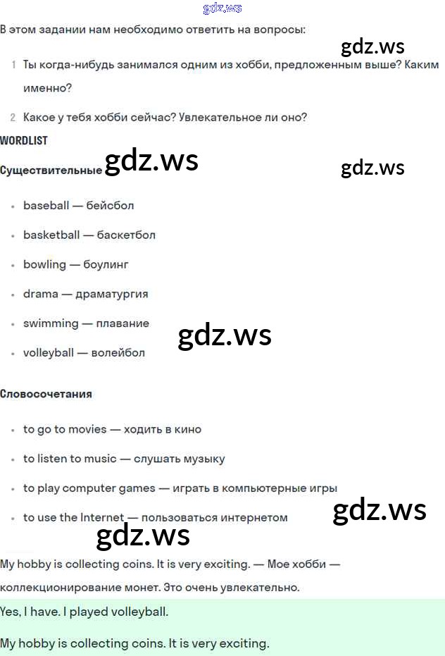 Готовый и полный ответ к Unit 10. Interests and hobbies - Английскому языку 5 класс Вербицкая Рабочая тетрадь Forward ФГОС