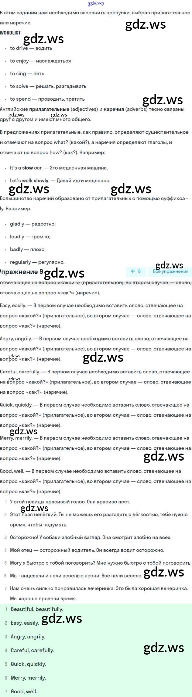 Номера упражнений: