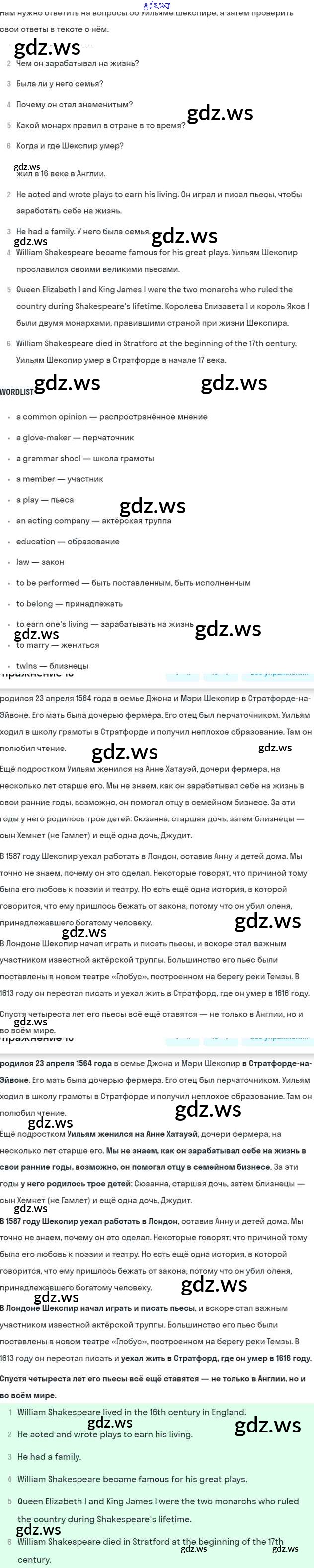 Готовый и полный ответ к Unit 10. Shakespeare’s Land Часть 2 - Английскому языку 6 класс Афанасьева Учебник Углубленный уровень ФГОС