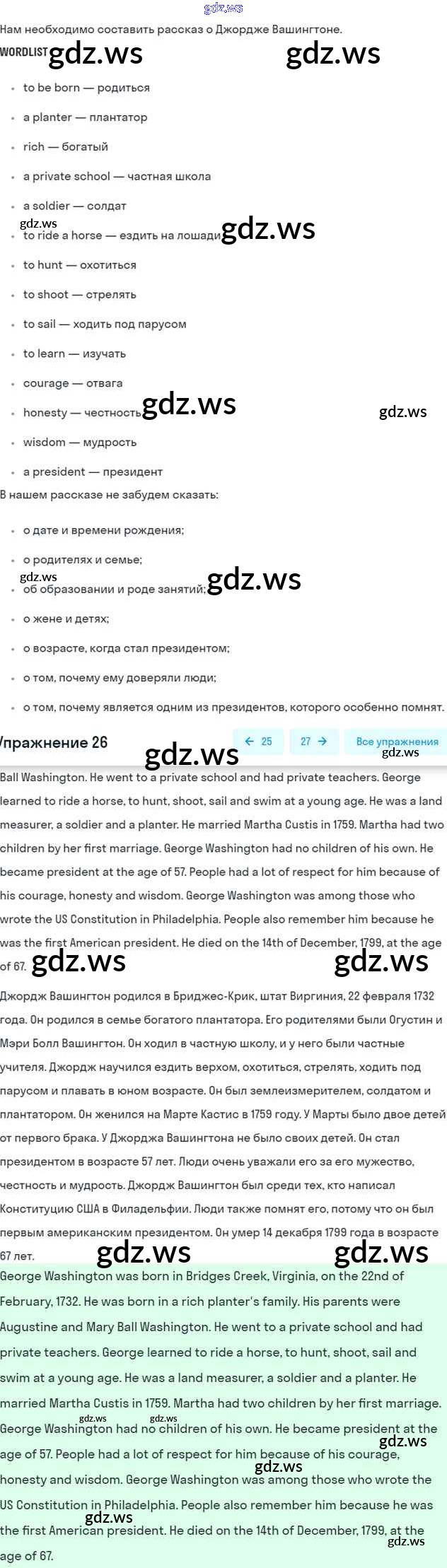 Готовый и полный ответ к Unit 18. American President Часть 2 - Английскому языку 6 класс Афанасьева Учебник Углубленный уровень ФГОС