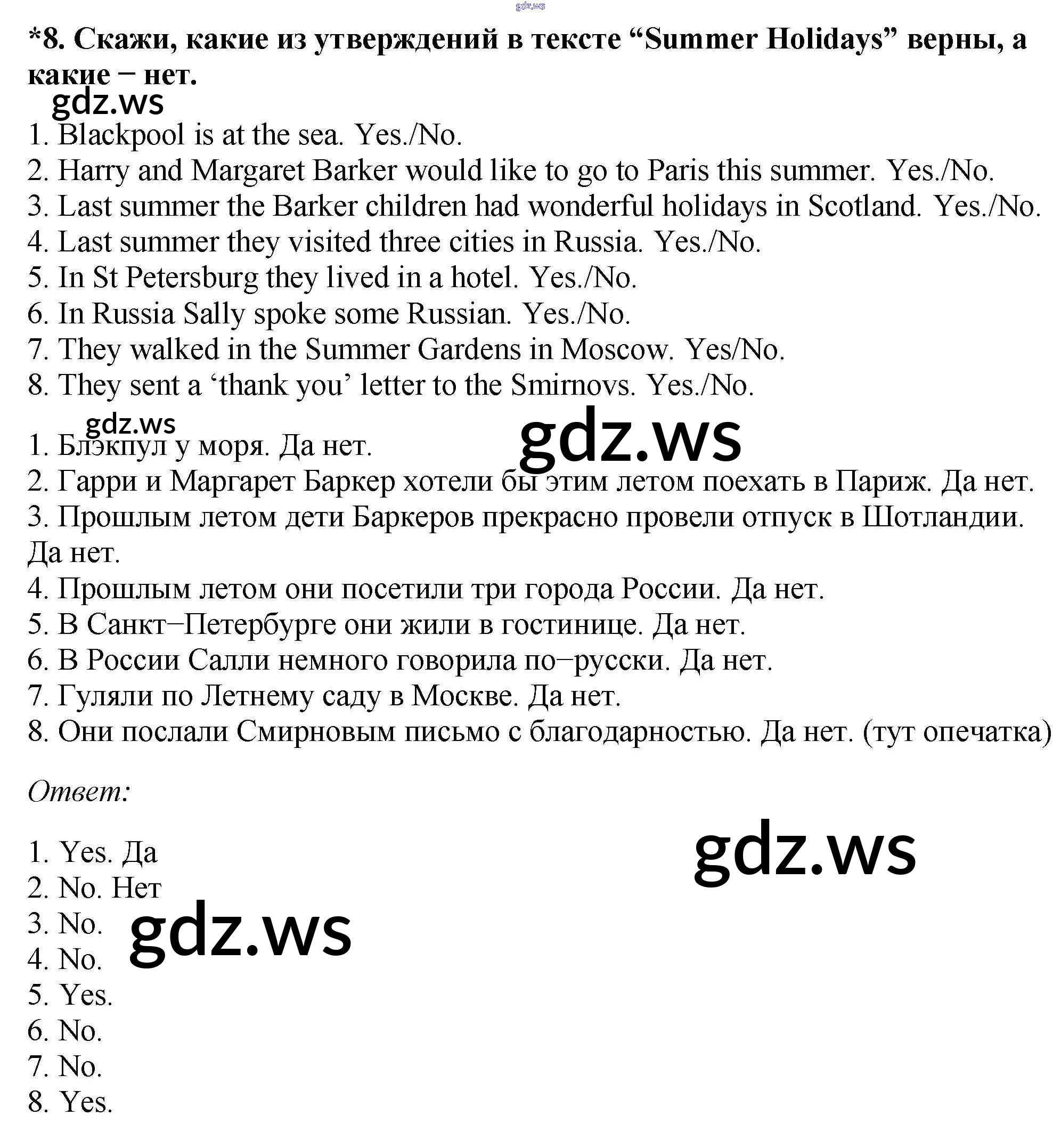 Готовый и полный ответ к Step 3 Unit 8. Holidays and Travelling - Английскому языку 6 класс Афанасьева Учебник Новый курс ФГОС