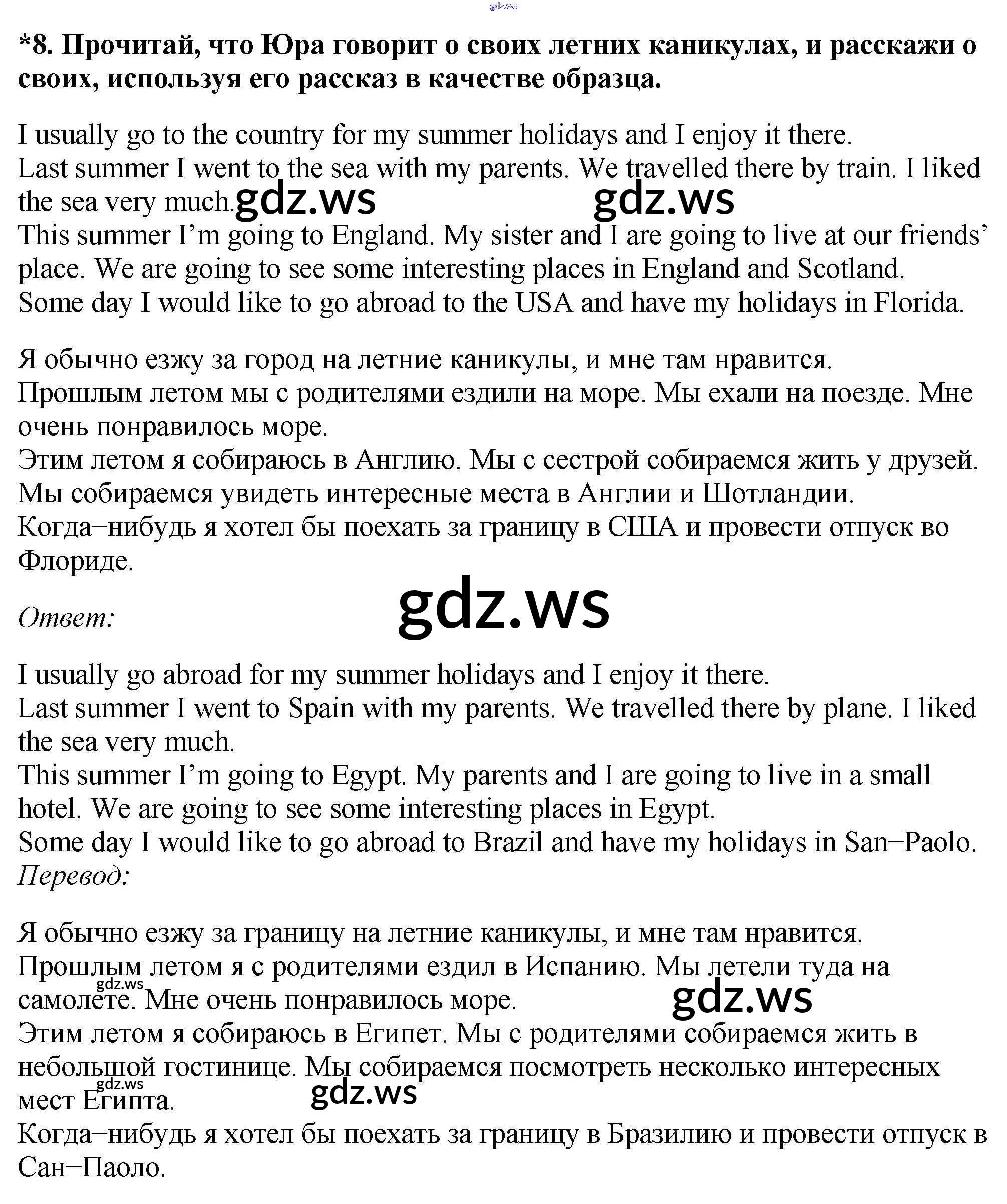 Готовый и полный ответ к Step 5 Unit 8. Holidays and Travelling - Английскому языку 6 класс Афанасьева Учебник Новый курс ФГОС