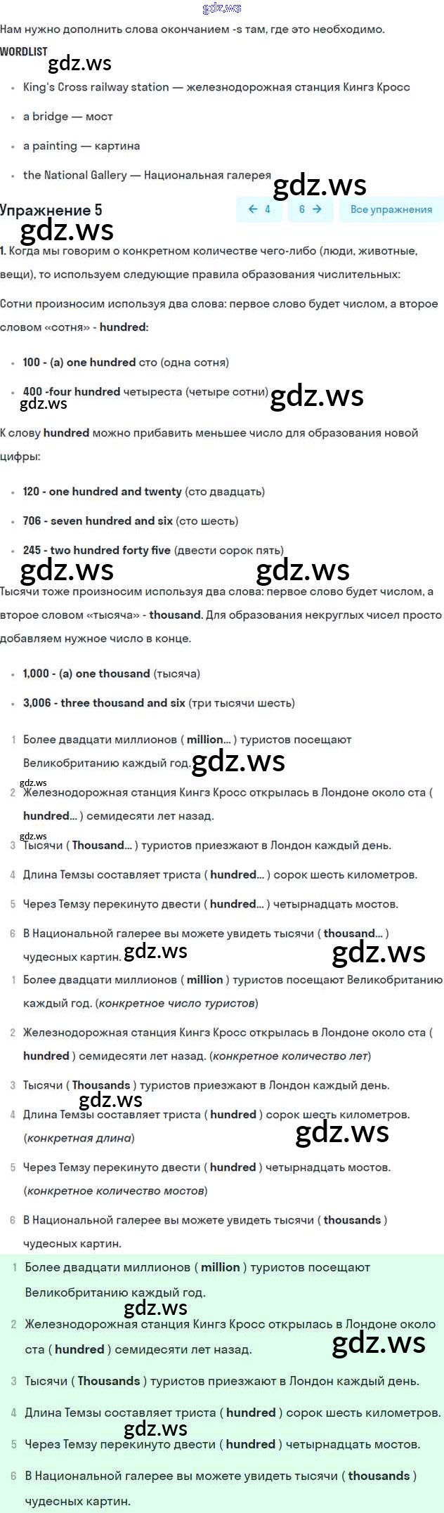 Номера упражнений: