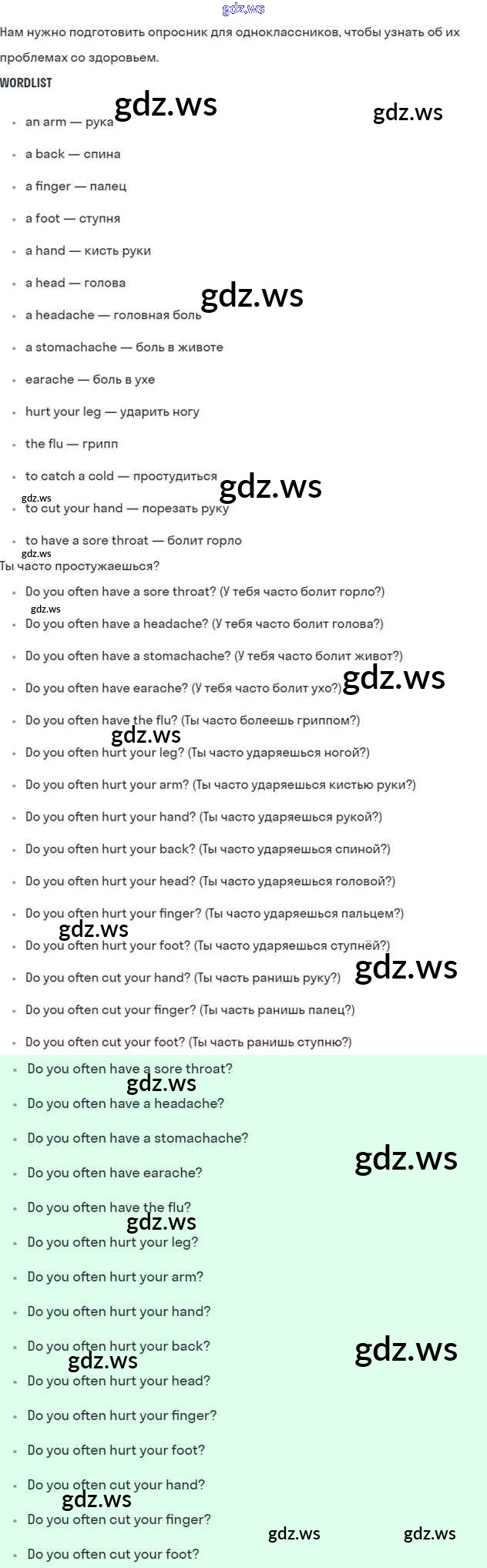 Готовый и полный ответ к Lesson 1 Unit 5. Do you care about your health? - Английскому языку 6 класс Кузовлев Учебник Академический школьный учебник ФГОС