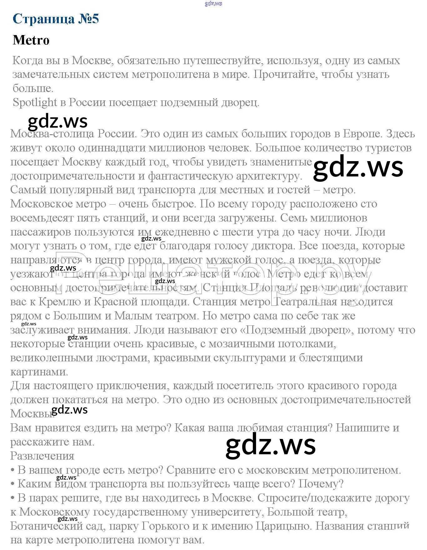 Готовый и полный ответ к Spotlight in Russia - Английскому языку 6 класс Ваулина Рабочая тетрадь Spotlight ФГОС