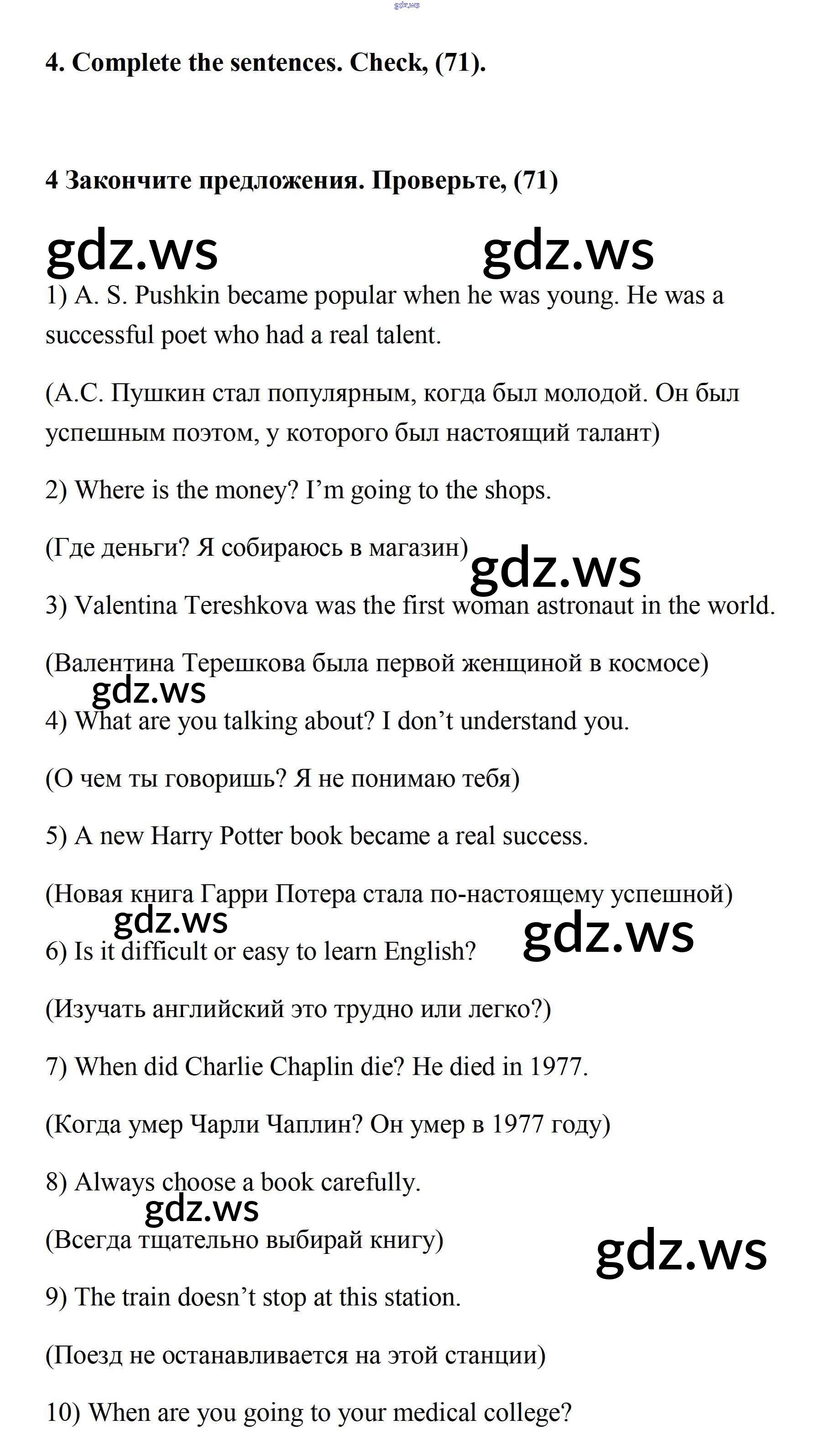 Готовый и полный ответ к Секция 4 Unit 3 - Английскому языку 7 класс Афанасьева Учебник Новый курс ФГОС