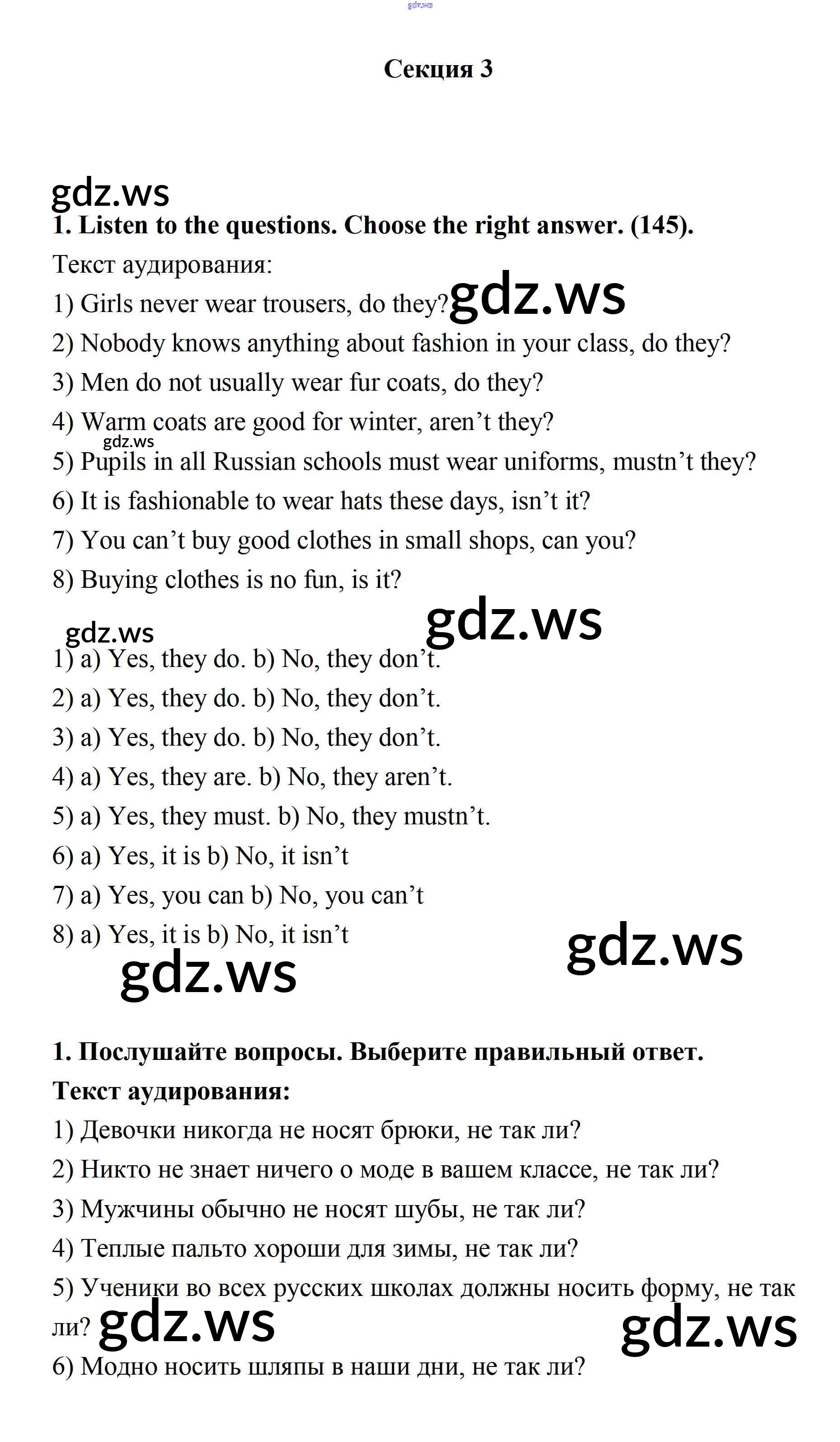 Готовый и полный ответ к Секция 3 Unit 7 - Английскому языку 7 класс Афанасьева Учебник Новый курс ФГОС