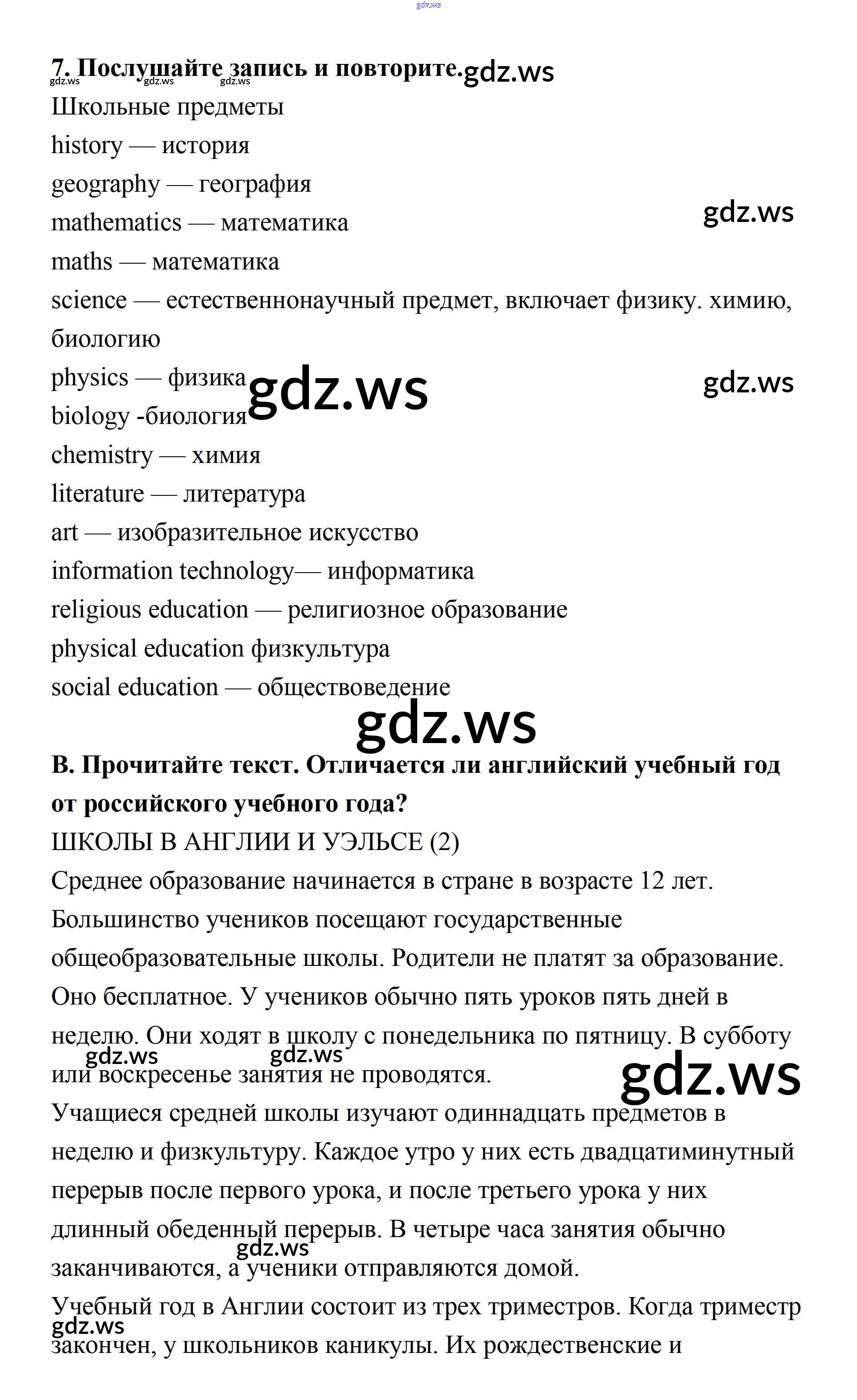 Готовый и полный ответ к Секция 3 Unit 7 - Английскому языку 7 класс Афанасьева Учебник Новый курс ФГОС