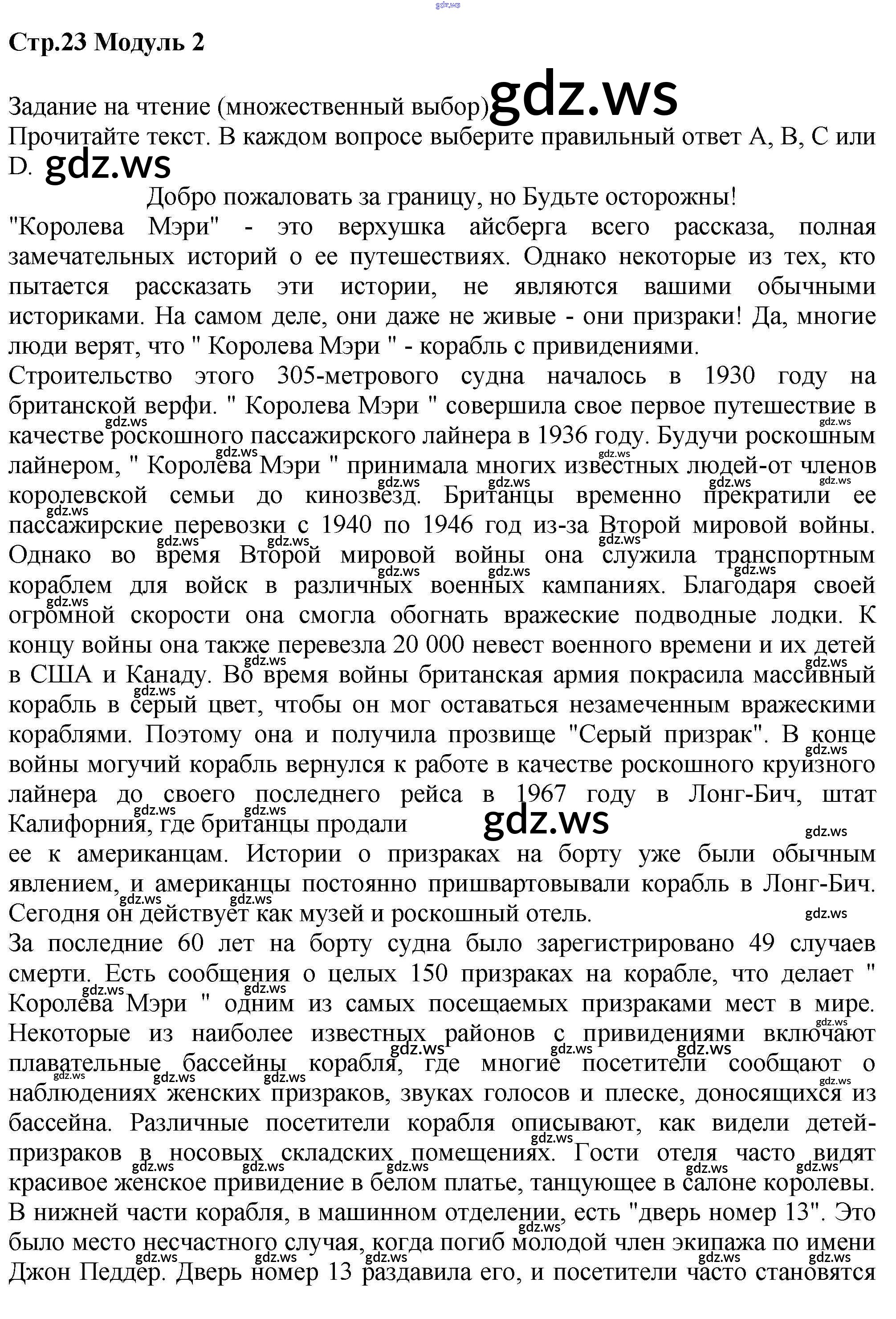 Готовый и полный ответ к Module 2 - Английскому языку 7 класс Баранова Рабочая тетрадь Углубленный уровень Starlight ФГОС