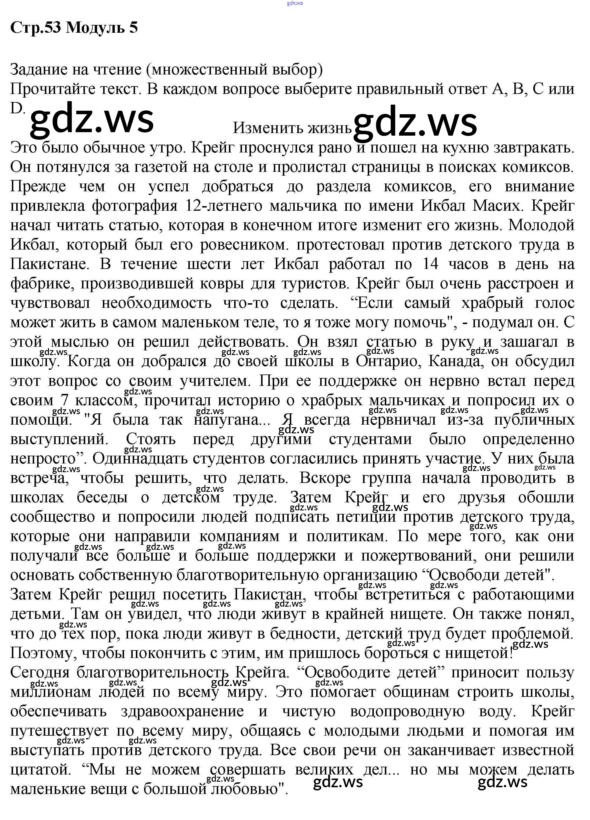 Готовый и полный ответ к Module 5 - Английскому языку 7 класс Баранова Рабочая тетрадь Углубленный уровень Starlight ФГОС