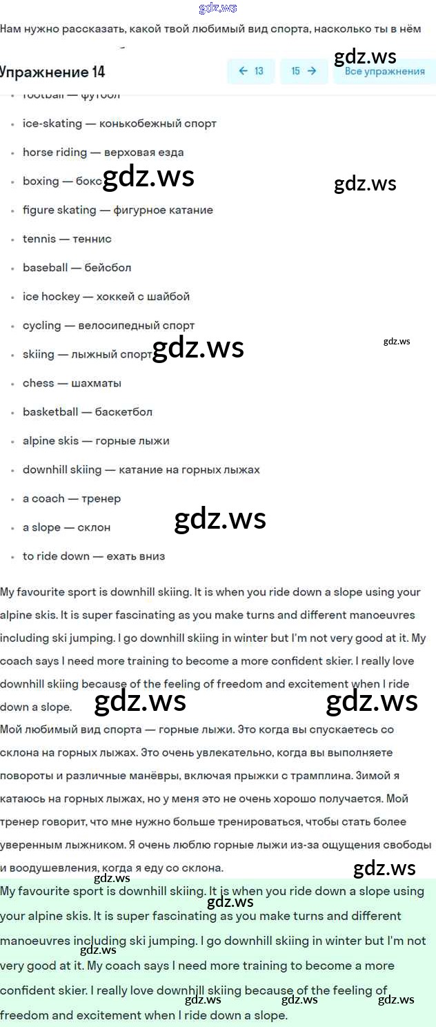 Готовый и полный ответ к Exercises Unit 4. Sport is fun - Английскому языку 7 класс Биболетова Учебник УМК ФГОС