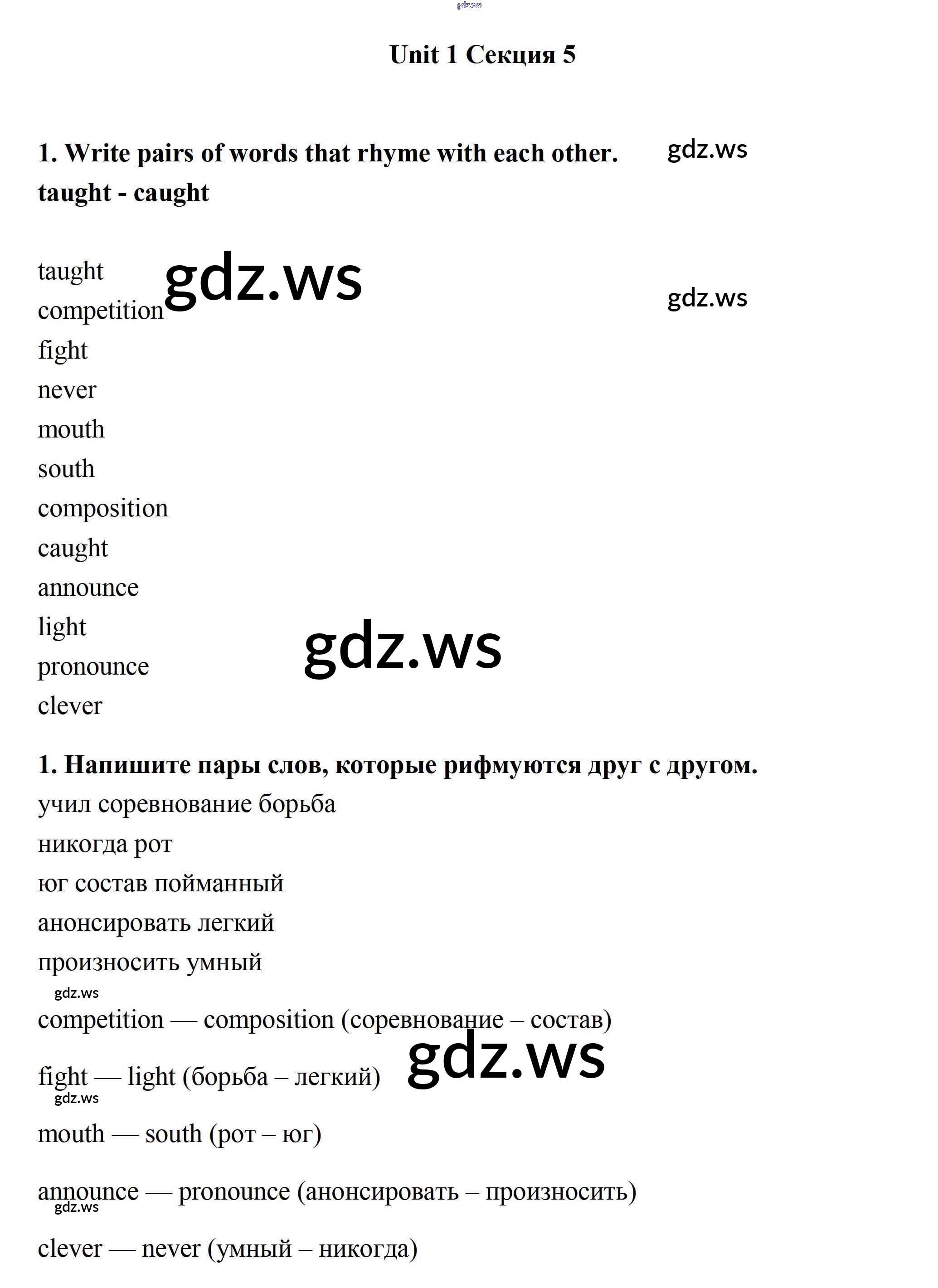 Готовый и полный ответ к Секция 5 Unit 1 - Английскому языку 7 класс Биболетова Рабочая тетрадь Enjoy English