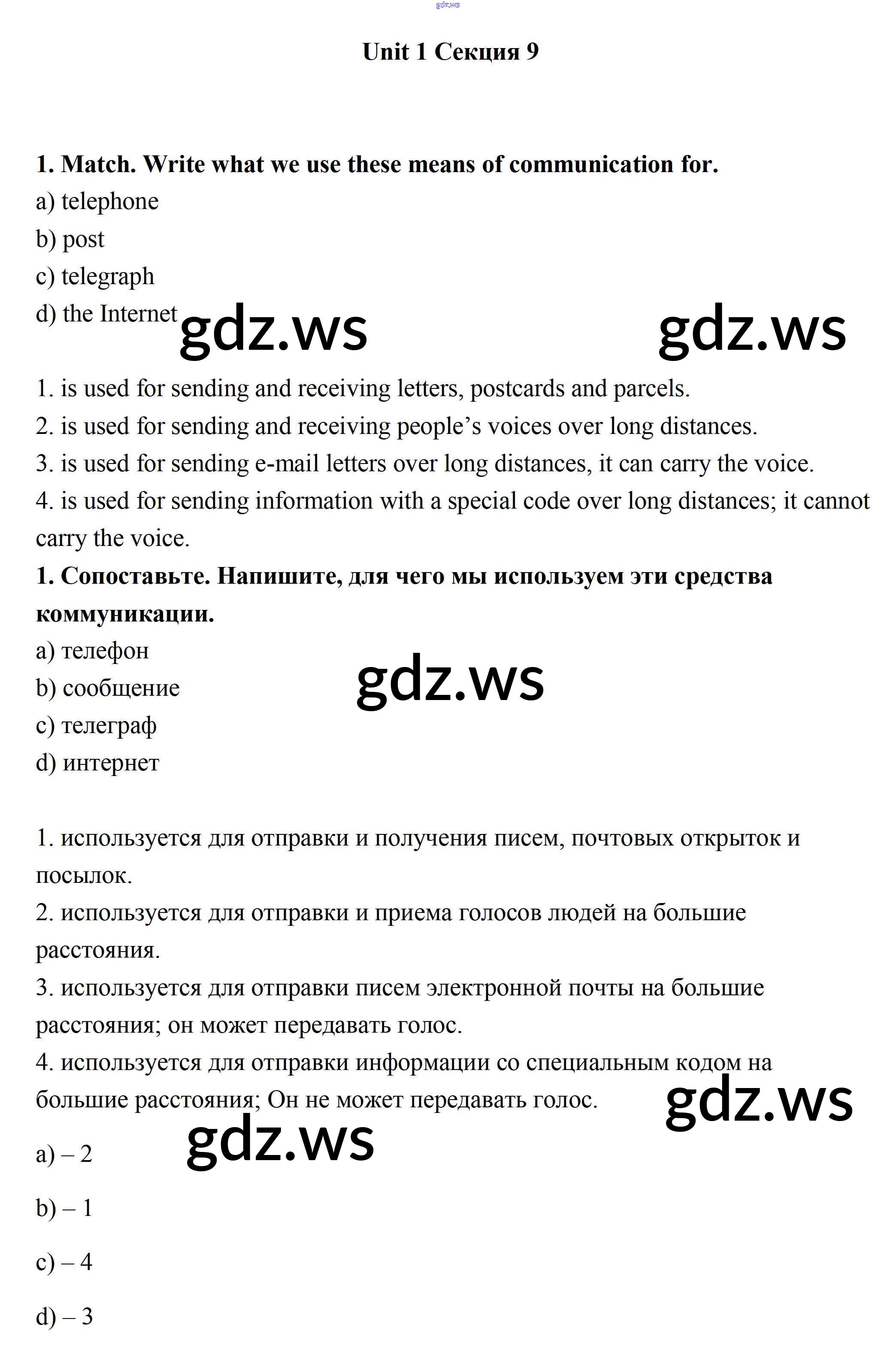 Готовый и полный ответ к Секция 9 Unit 1 - Английскому языку 7 класс Биболетова Рабочая тетрадь Enjoy English