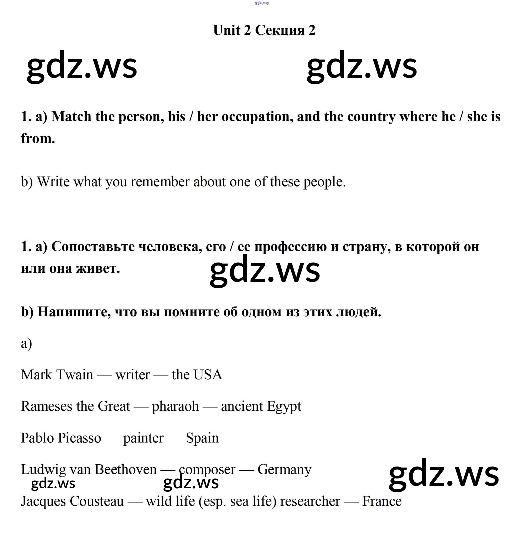 Готовый и полный ответ к Секция 2 Unit 2 - Английскому языку 7 класс Биболетова Рабочая тетрадь Enjoy English