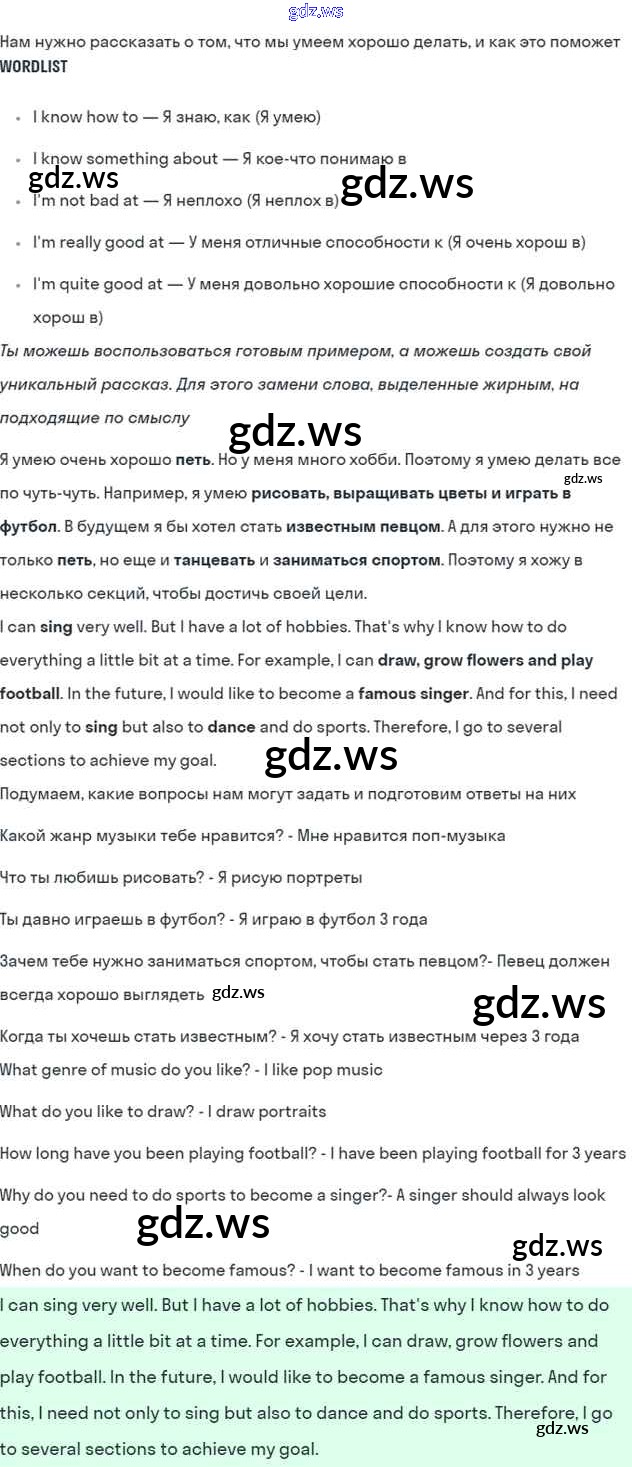Готовый и полный ответ к Lesson 8 Unit 2. What are you good at? - Английскому языку 7 класс Кузовлев Учебник УМК ФГОС
